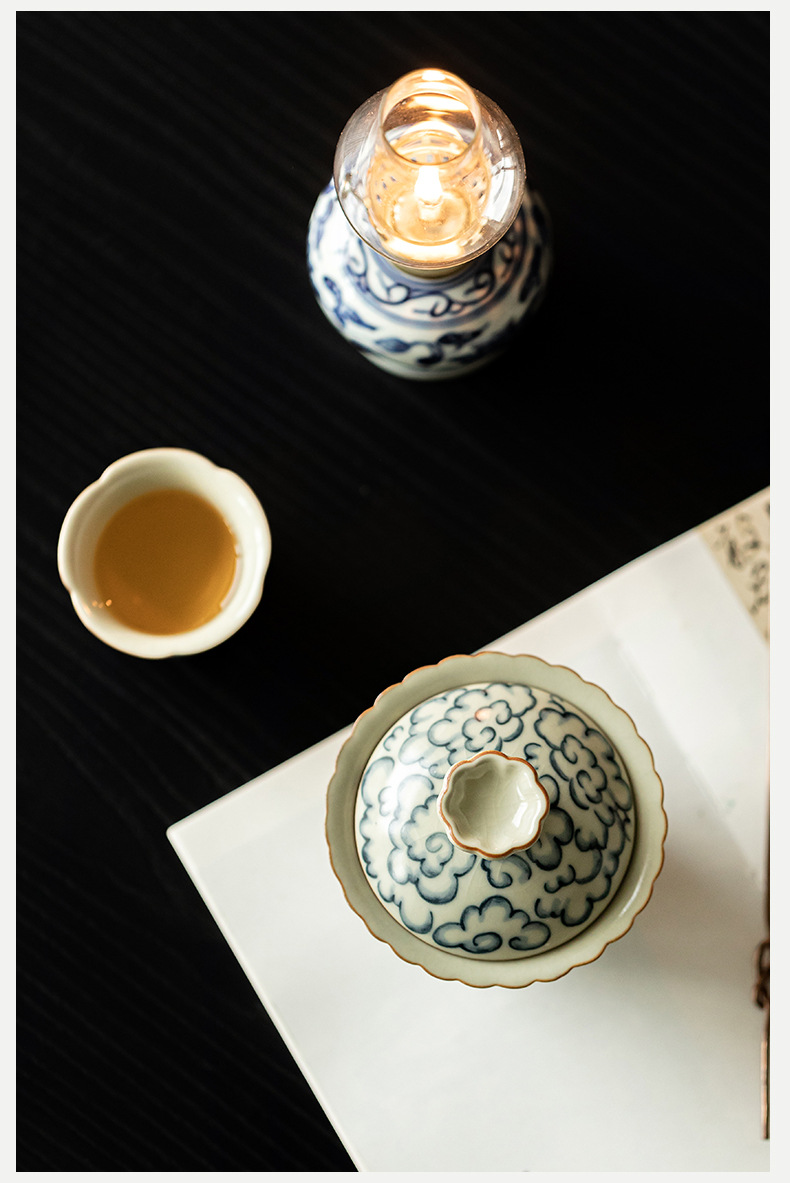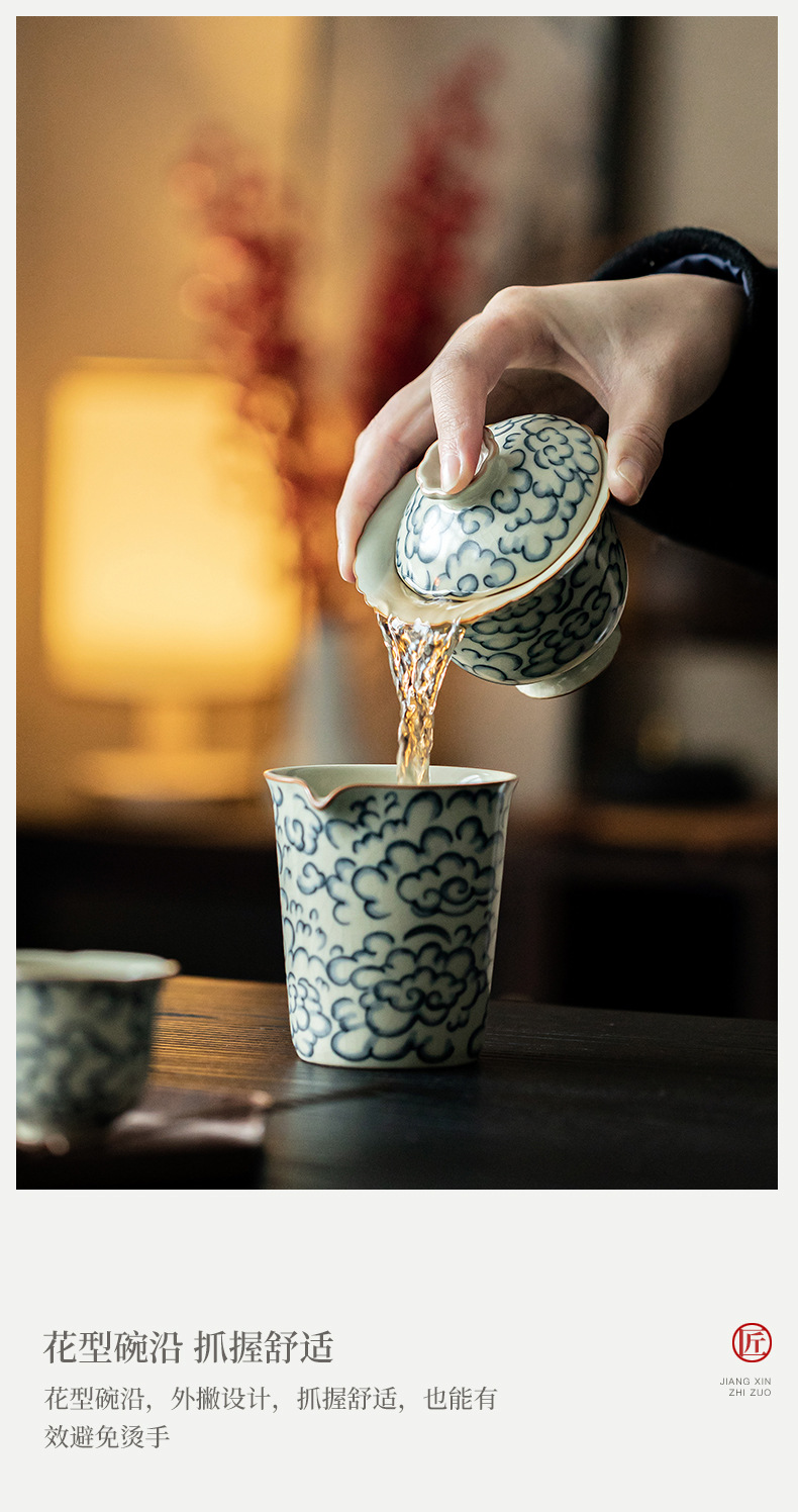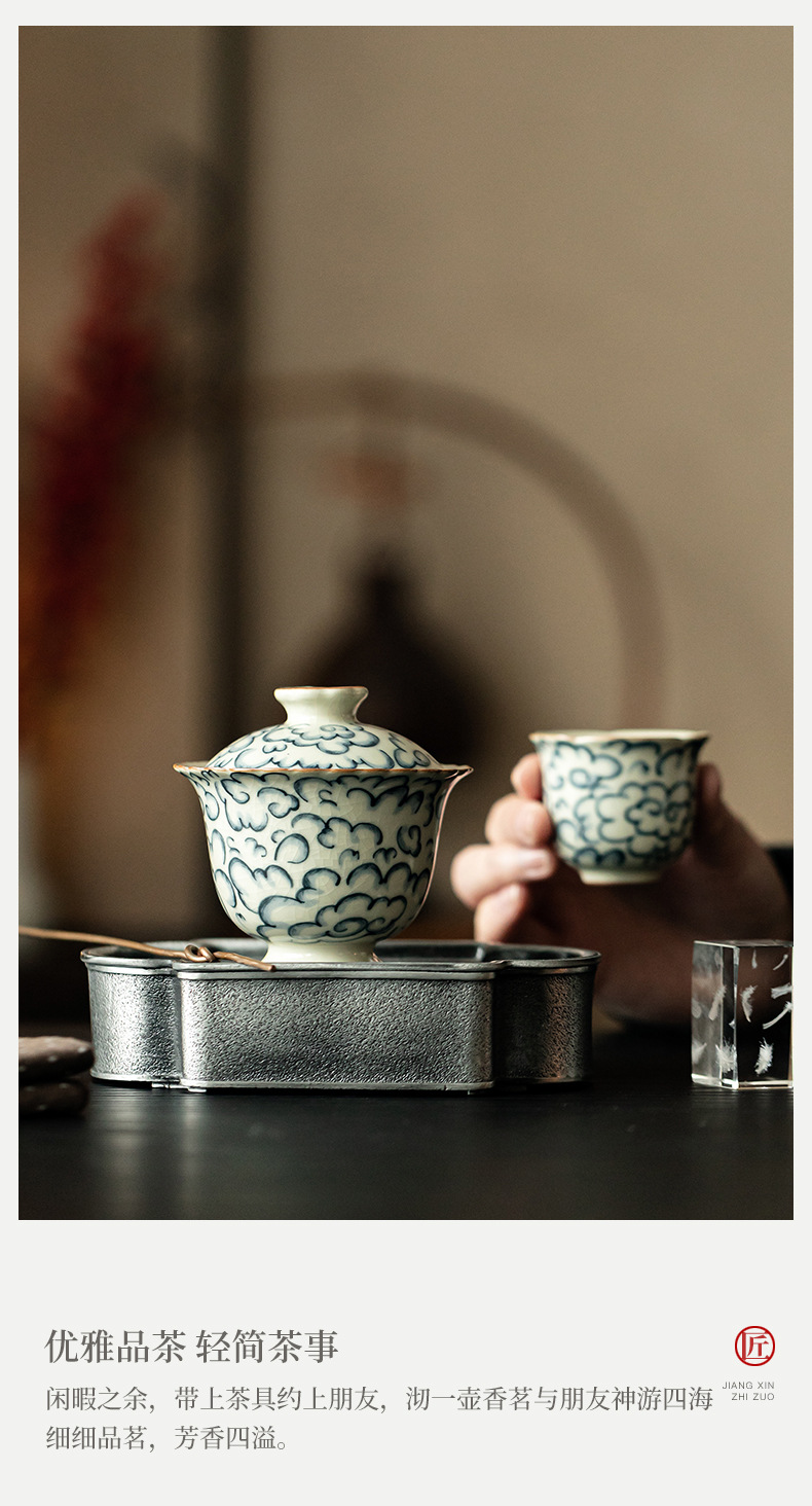 - Xiangyun Ru Lò ren hai nắp bát uống trà bát tách trà đơn không nóng tay dụng cụ pha trà Kung Fu gốm cổ
