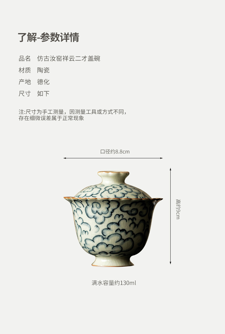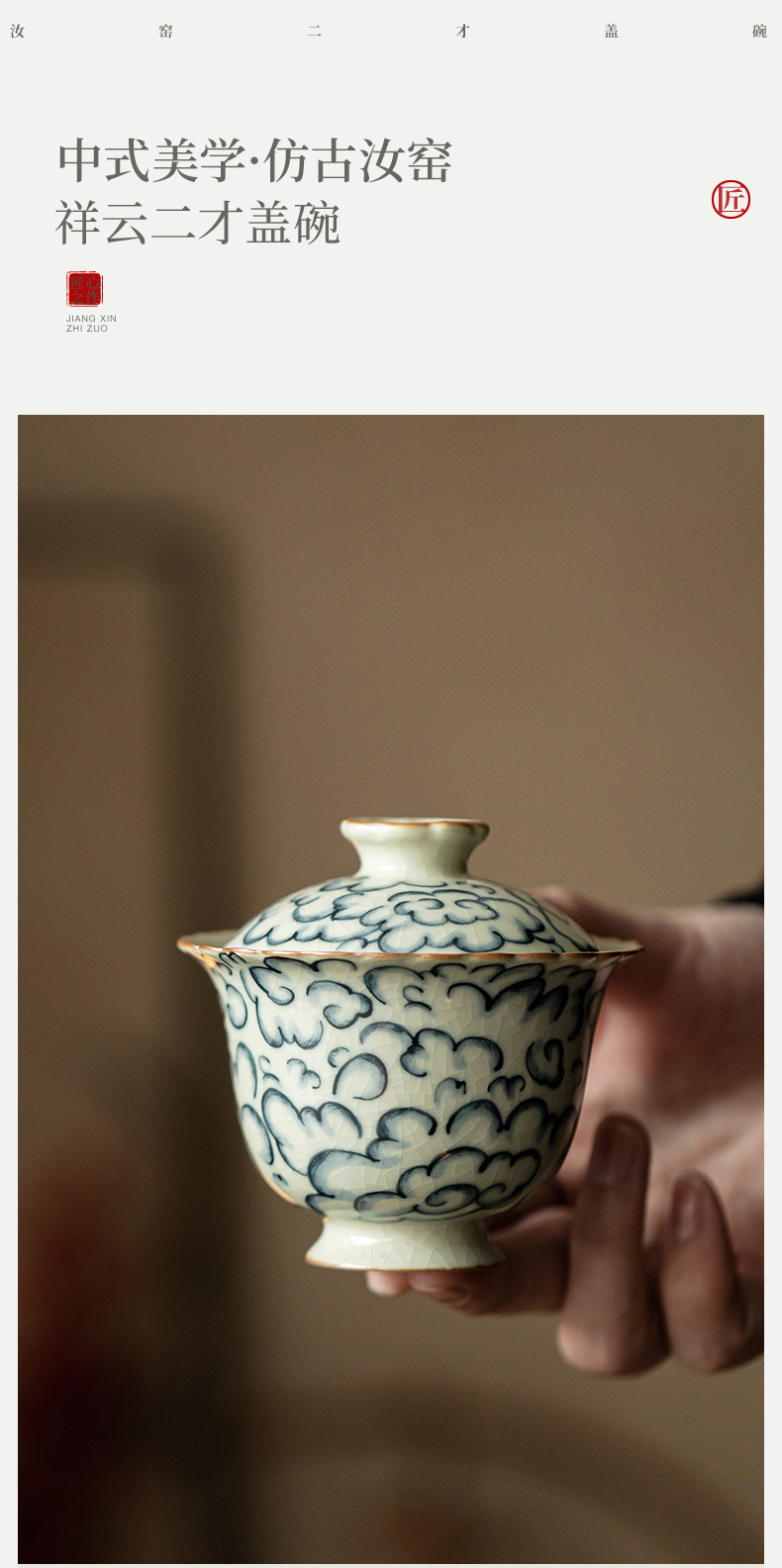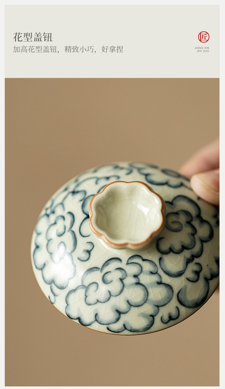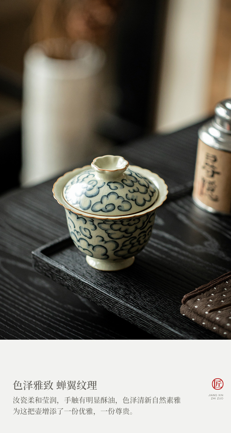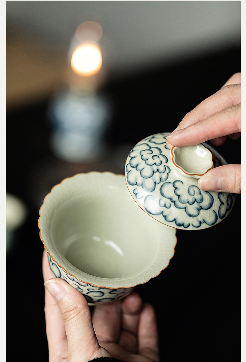 Xiangyun Ru Lò ren hai nắp bát uống trà bát tách trà đơn không nóng tay dụng cụ pha trà Kung Fu gốm cổ