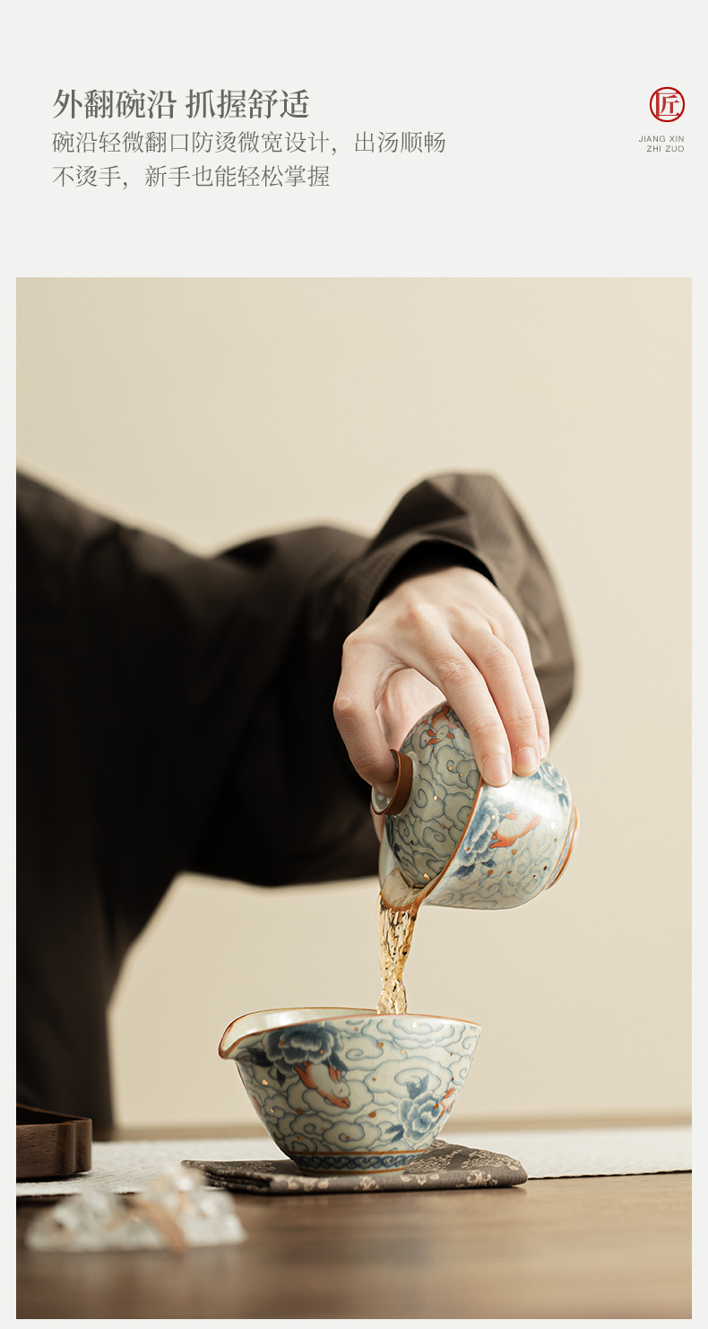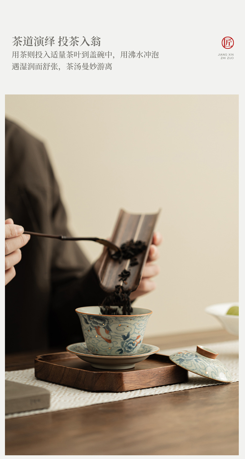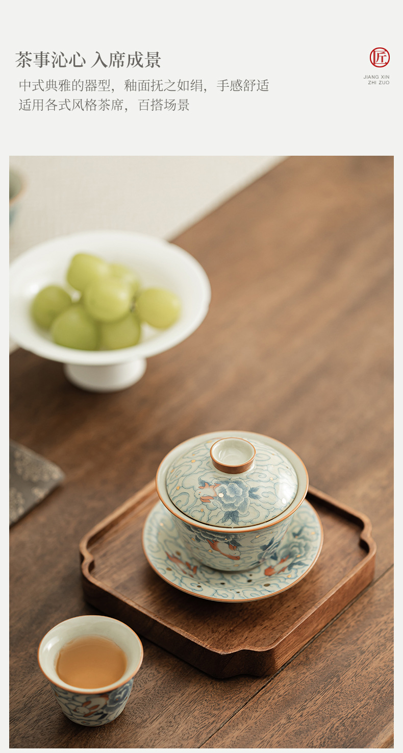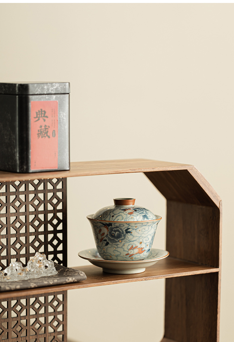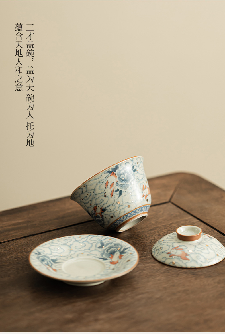 Xiangyun Ruitu Yuanbao Sancai có thể mở ra các lát có thể nuôi Ru lò để pha trà bát bộ trà gia dụng không nóng tay có nắp