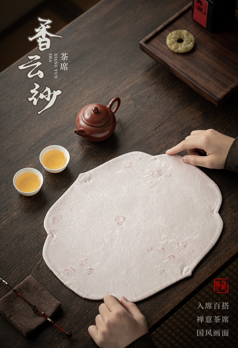 Xiangyunsha Mancao trà bột thảm mới phong cách Trung Quốc phong cách dân tộc trà hoa huệ thảm khăn trà để bàn trà thảm bong bóng khô thảm phụ kiện trà
