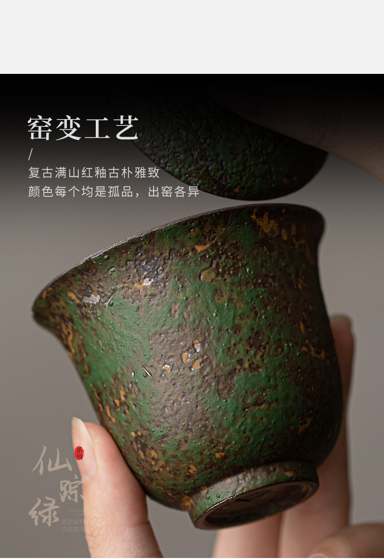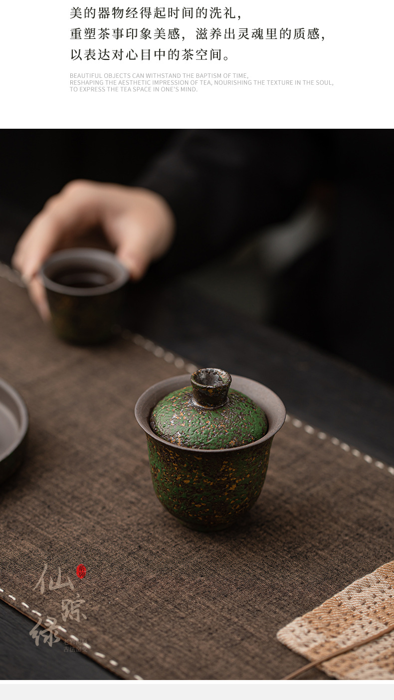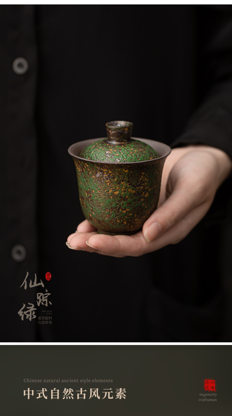 Xianzong Green Ercai Bát có nắp Cốc pha trà biến đổi lò bùn đá cổ cổ điển Cốc trà có nắp Bộ trà Kung Fu Bát trà đơn