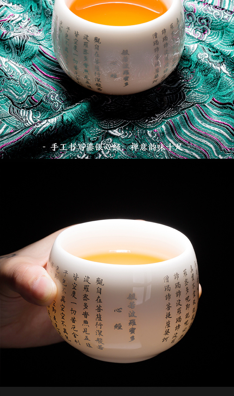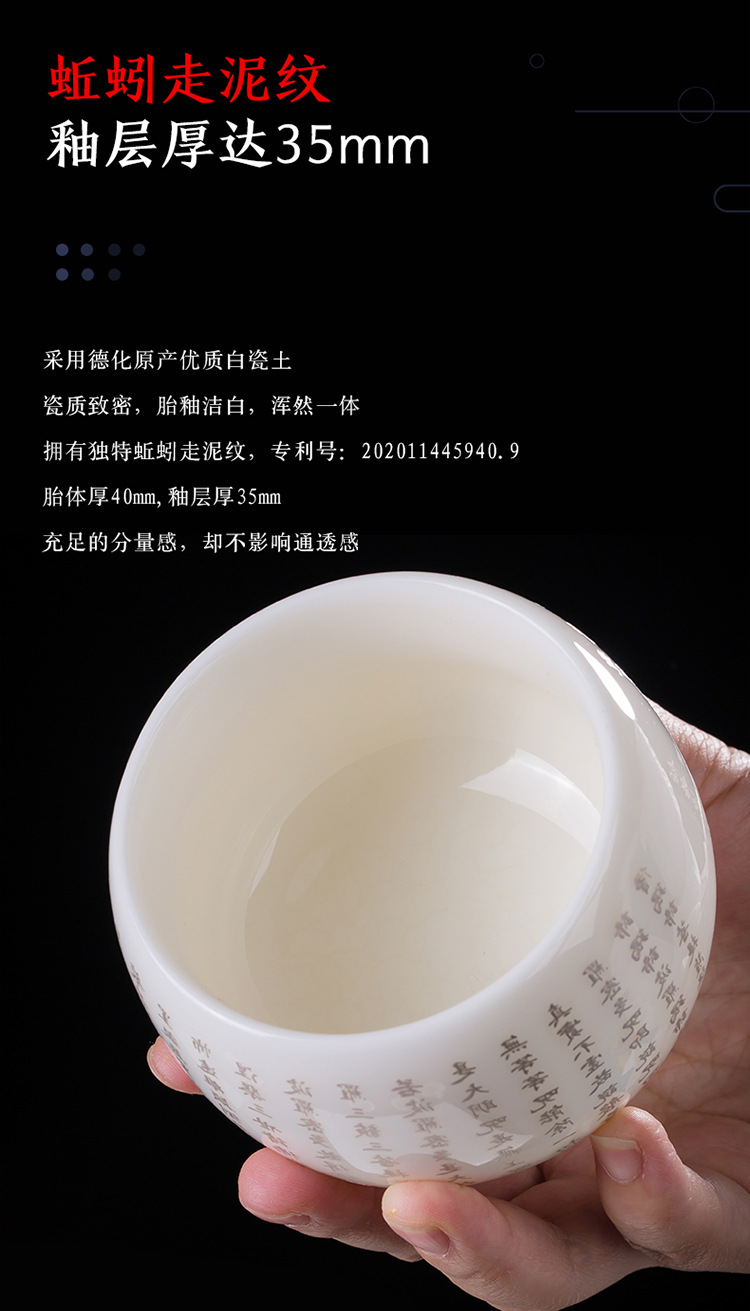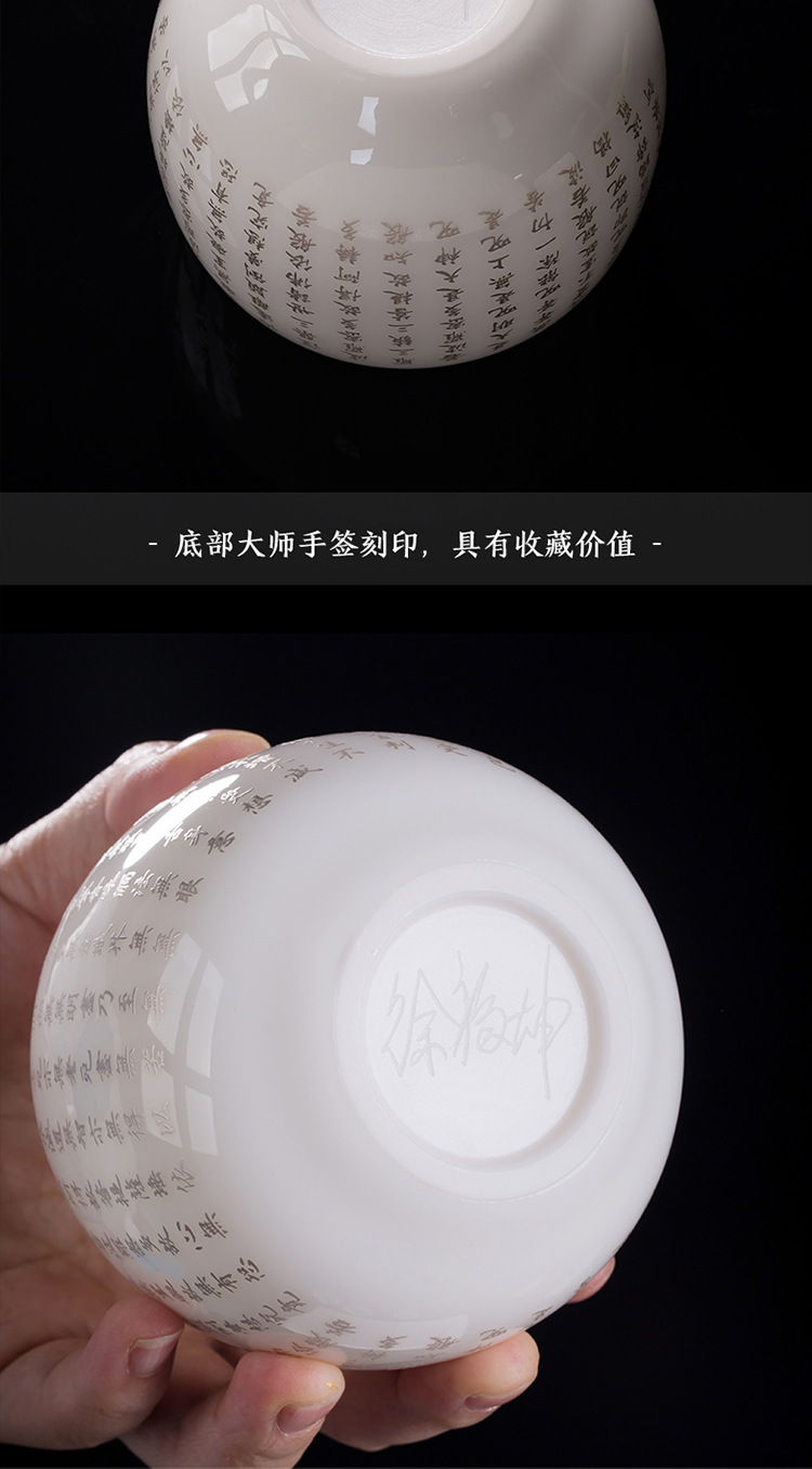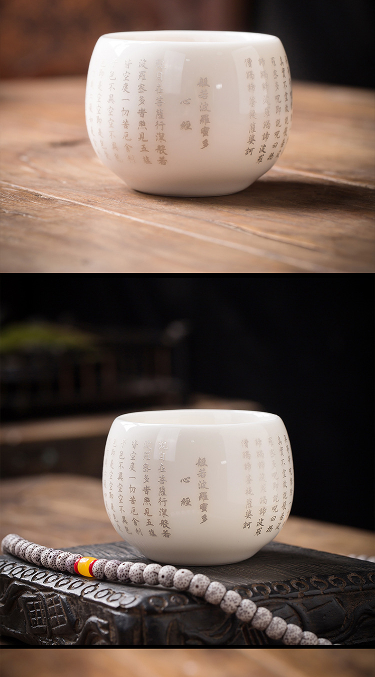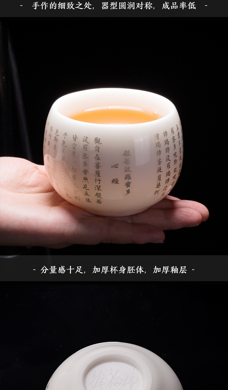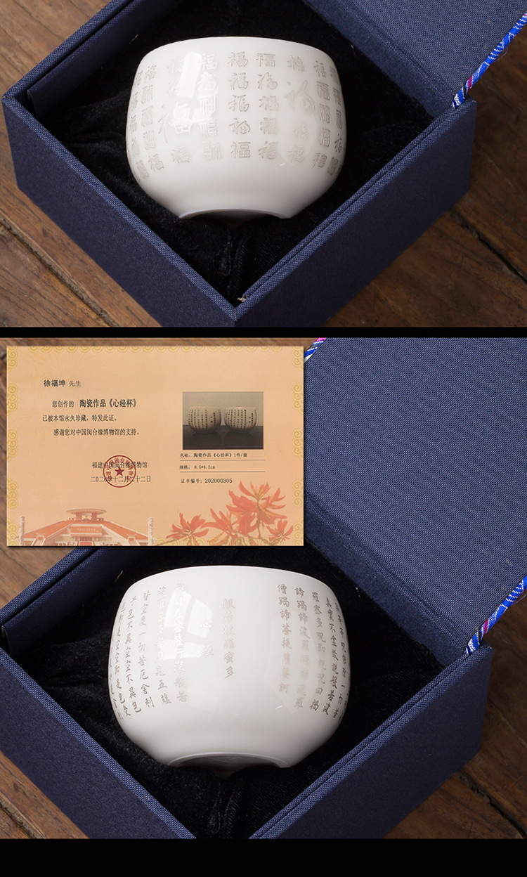 Xu Fukun làm thủ công Dehua sứ trắng mỡ cừu ngọc sứ trái tim kinh Baifu cốc trà cốc đơn cốc chủ nhân