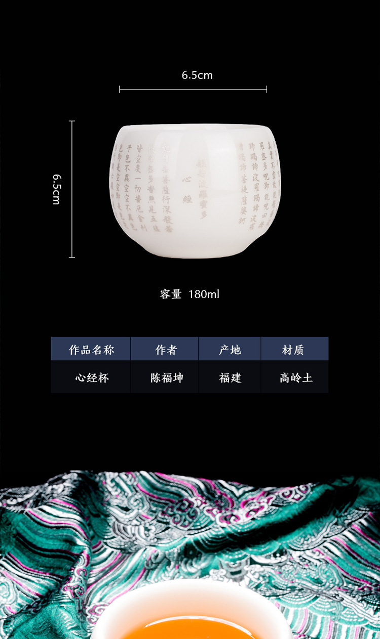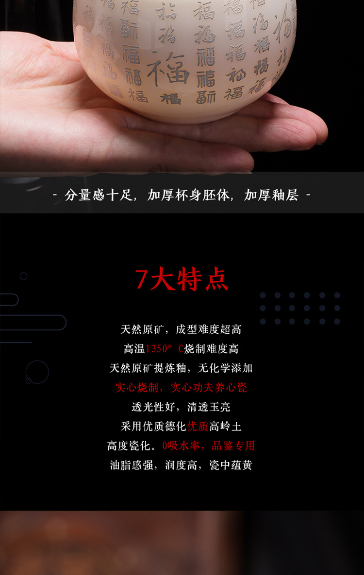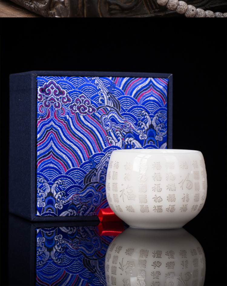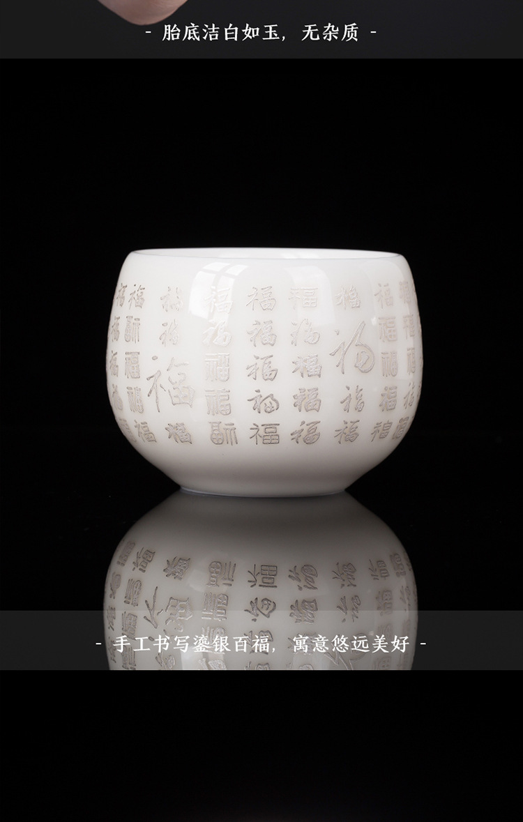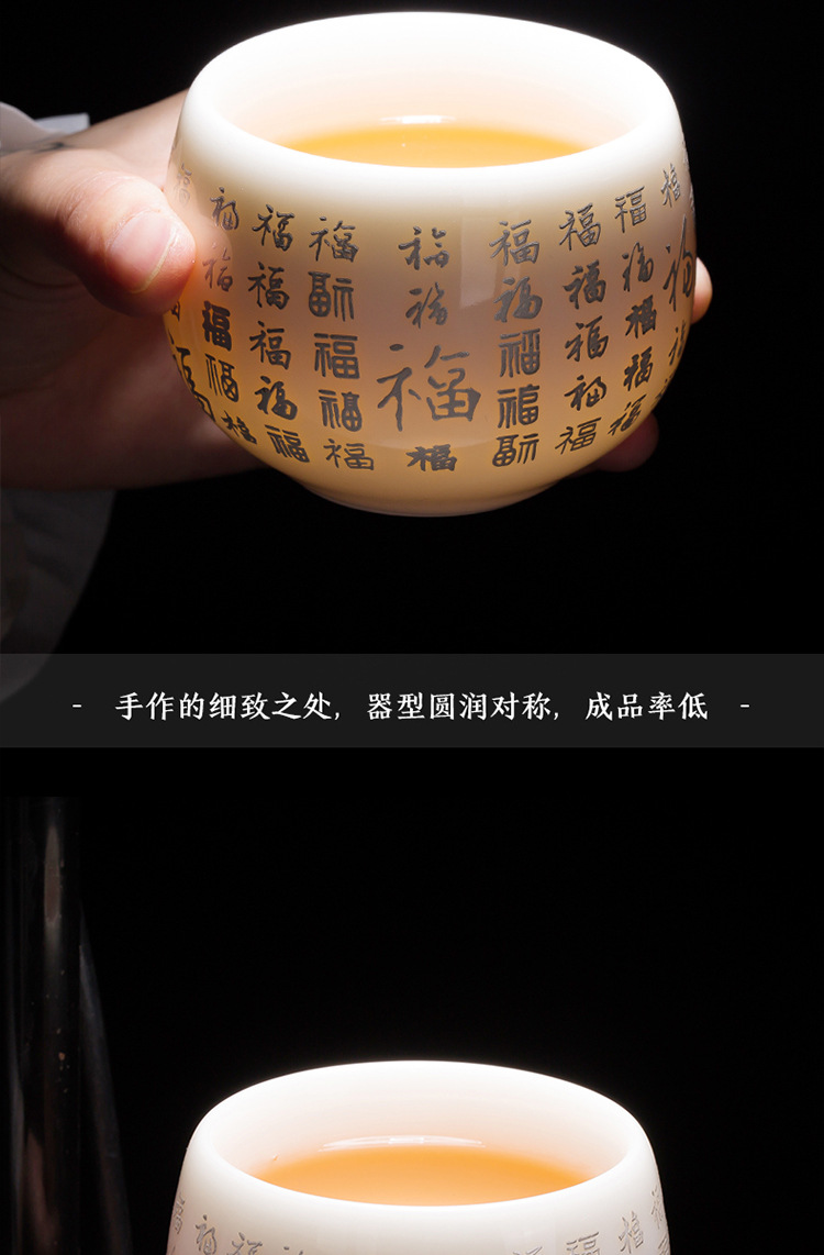 - Xu Fukun làm thủ công Dehua sứ trắng mỡ cừu ngọc sứ trái tim kinh Baifu cốc trà cốc đơn cốc chủ nhân