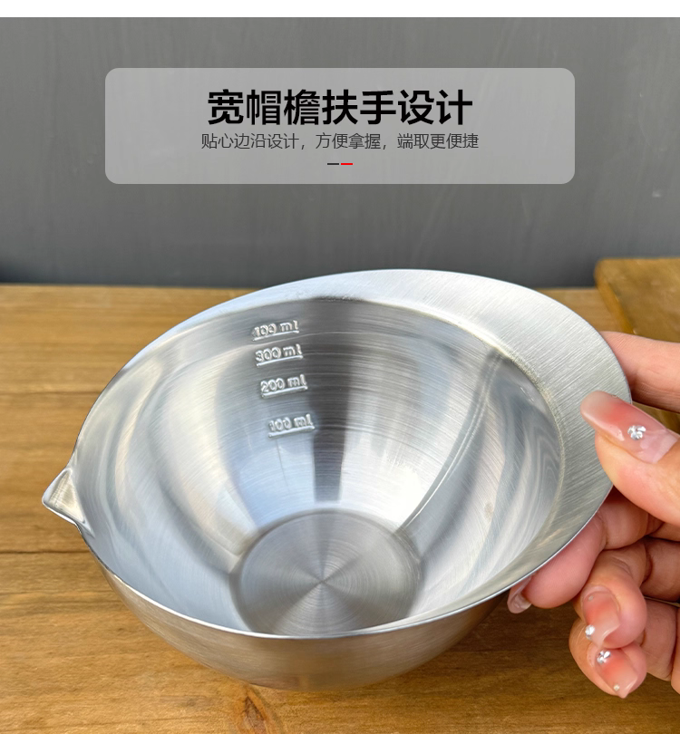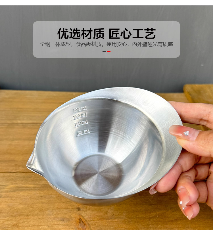 Xuất khẩu sang Nhật Bản, bát đựng gia vị, nước sốt, bột nhão làm bằng thép không gỉ 304 đạt chuẩn thực phẩm, có vòi rót, cốc đong có vạch chia độ