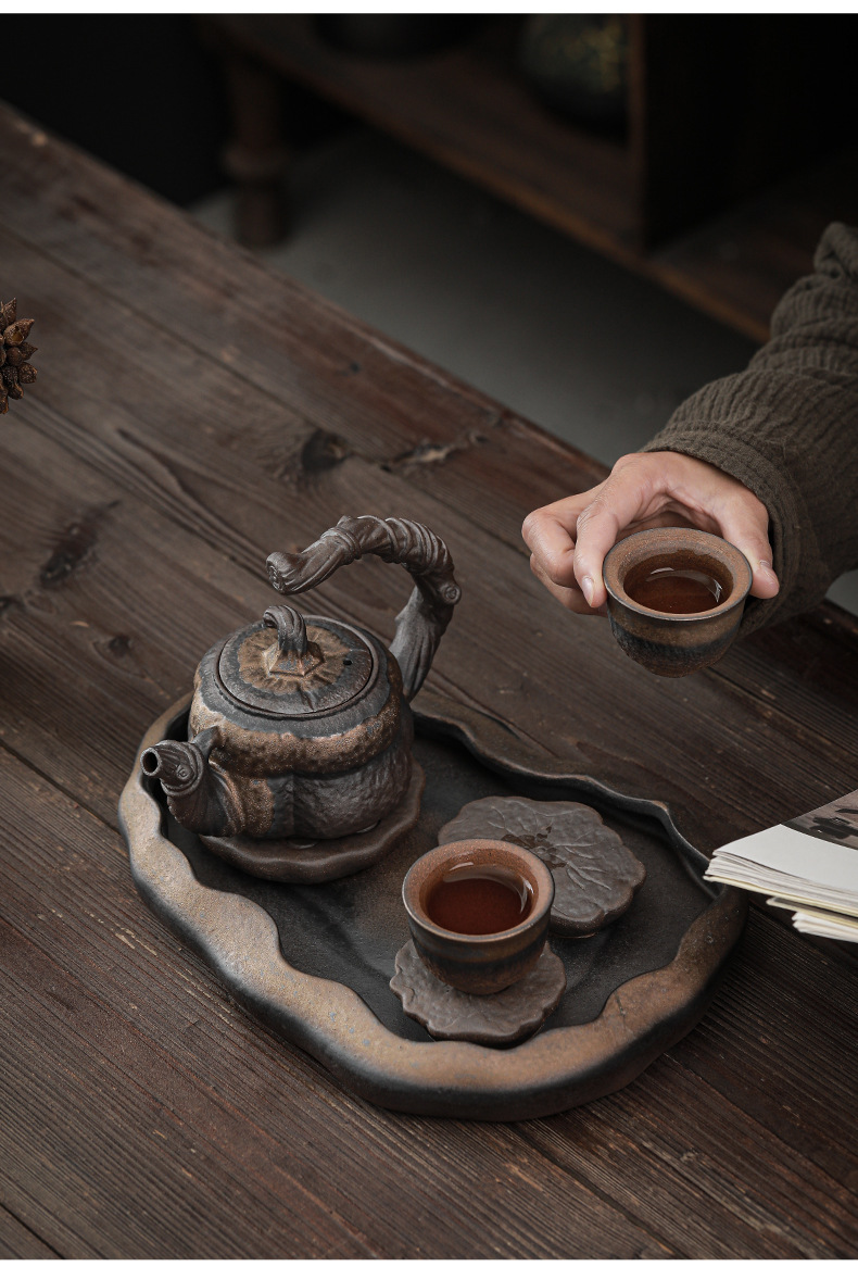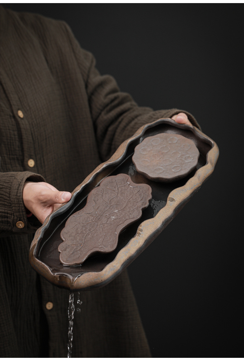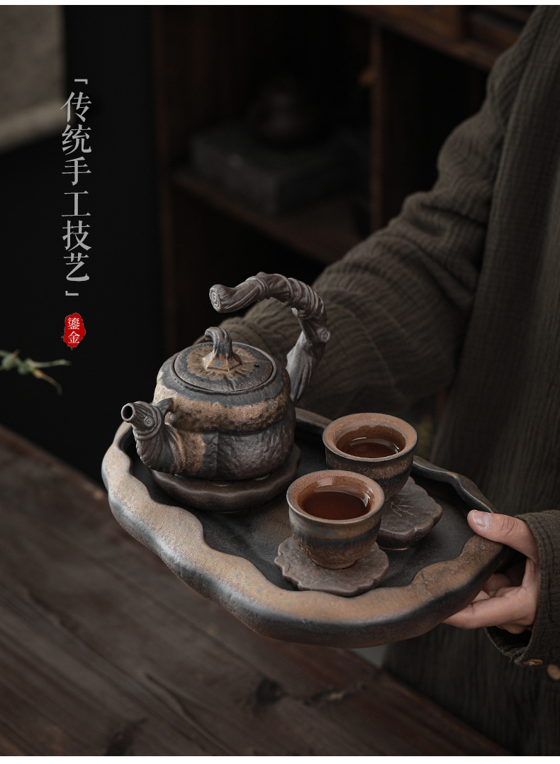 - Xưởng bán buôn bàn trà pha khô gốm thô khay đựng nước nhỏ Bộ trà đơn giản ấm gia dụng hiện đại khay sang trọng nhẹ
