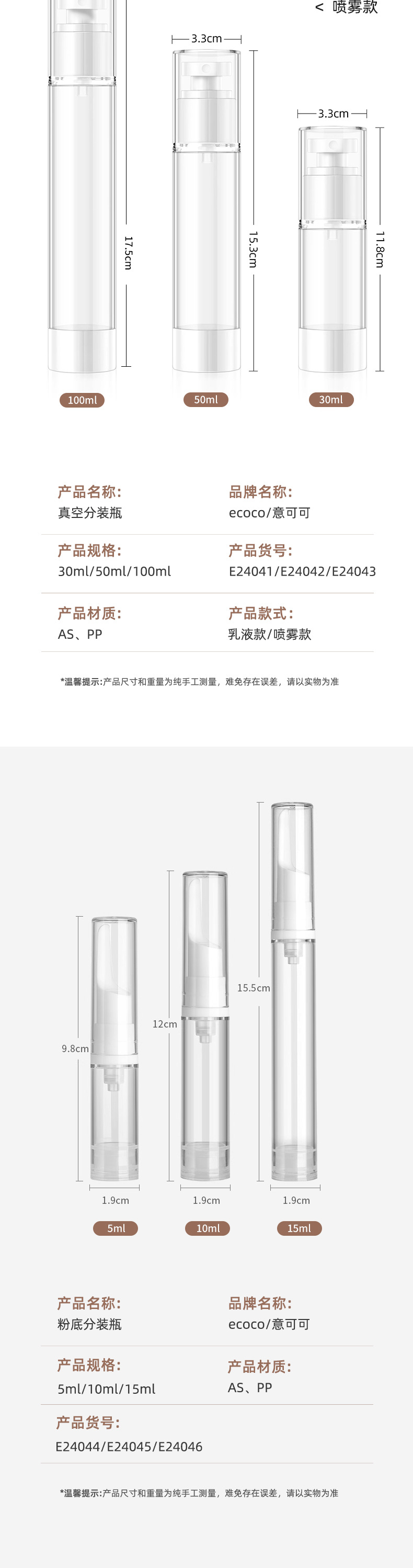 - Ý ca cao 30 ml50 ml100 ml chai chân không bấm chai đóng gói mỹ phẩm du lịch chai sữa tinh chất