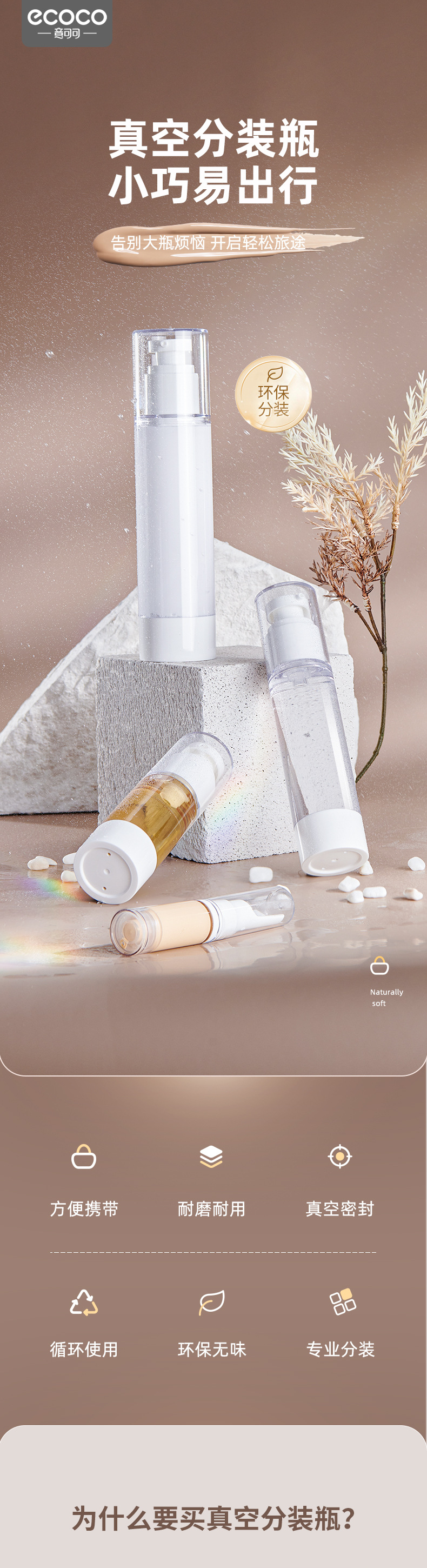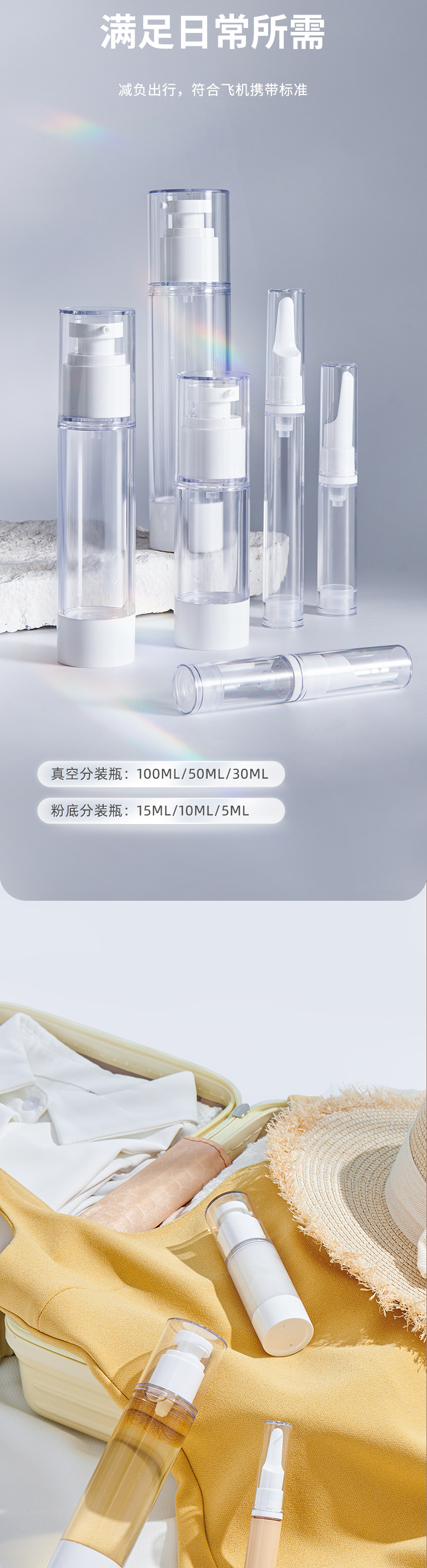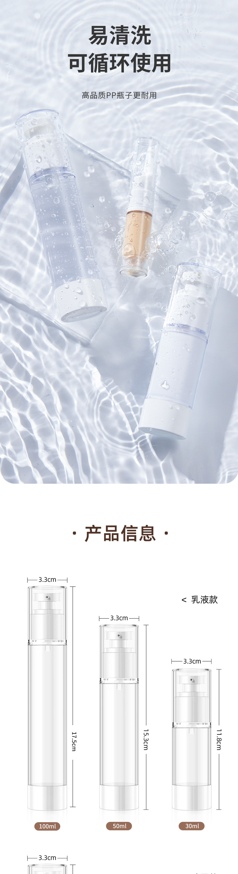 Ý ca cao 30 ml50 ml100 ml chai chân không bấm chai đóng gói mỹ phẩm du lịch chai sữa tinh chất