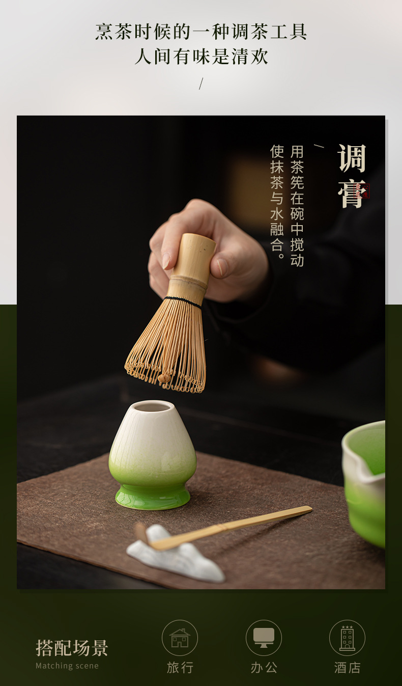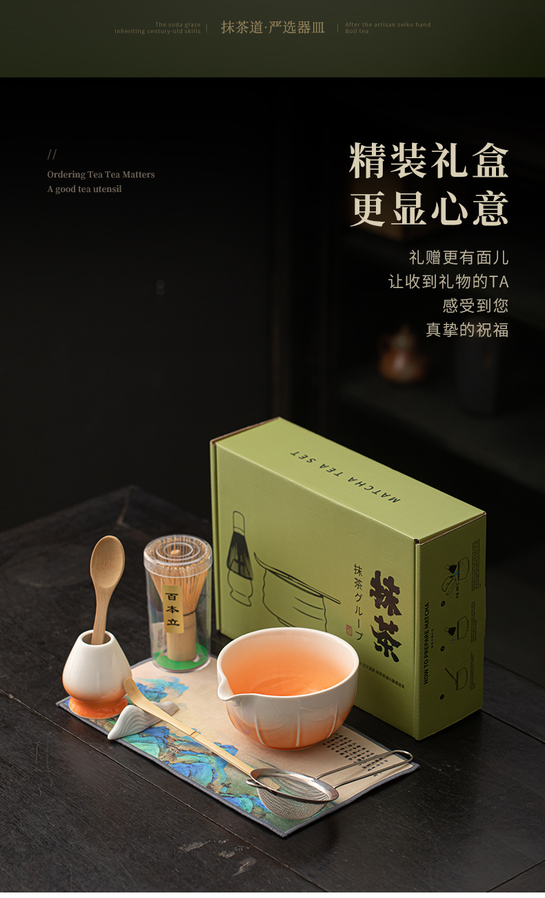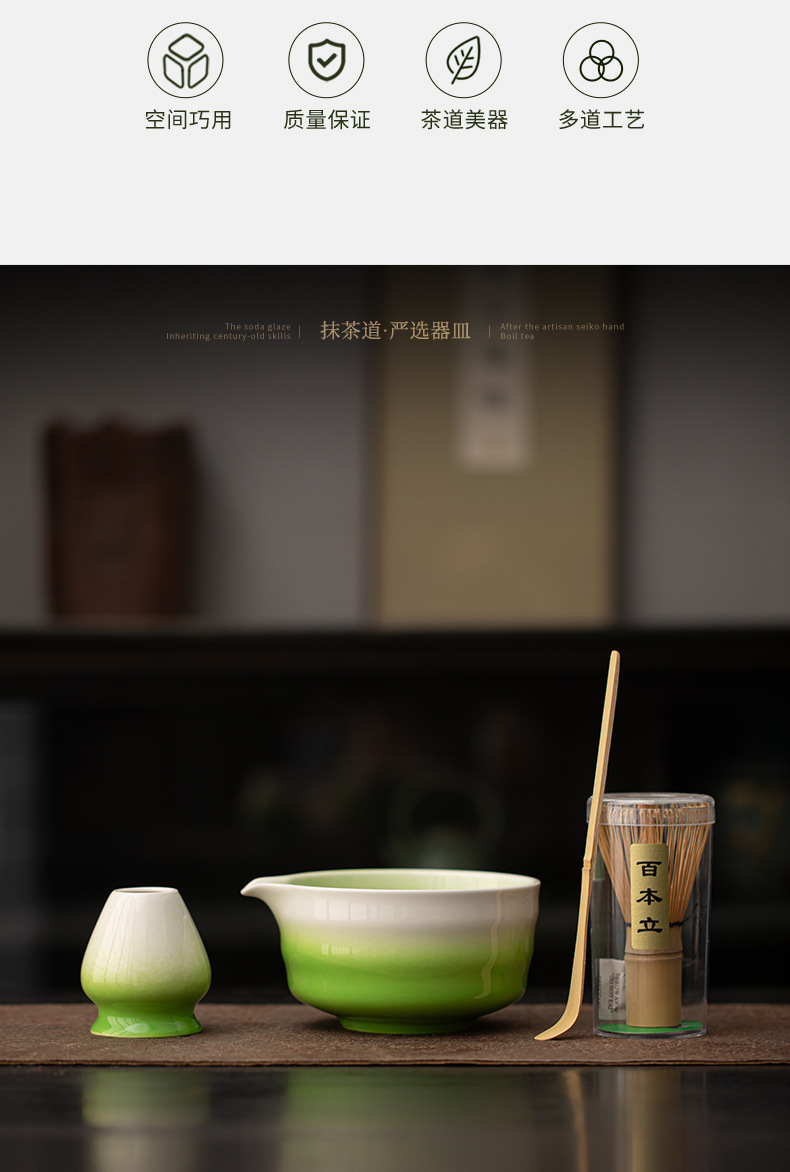 Yjian Gradient Gốm Matcha Bộ bốn mảnh Dụng cụ làm Matcha Nhật Bản Gọi bát trà Matcha Muỗng trà Li Baibenli