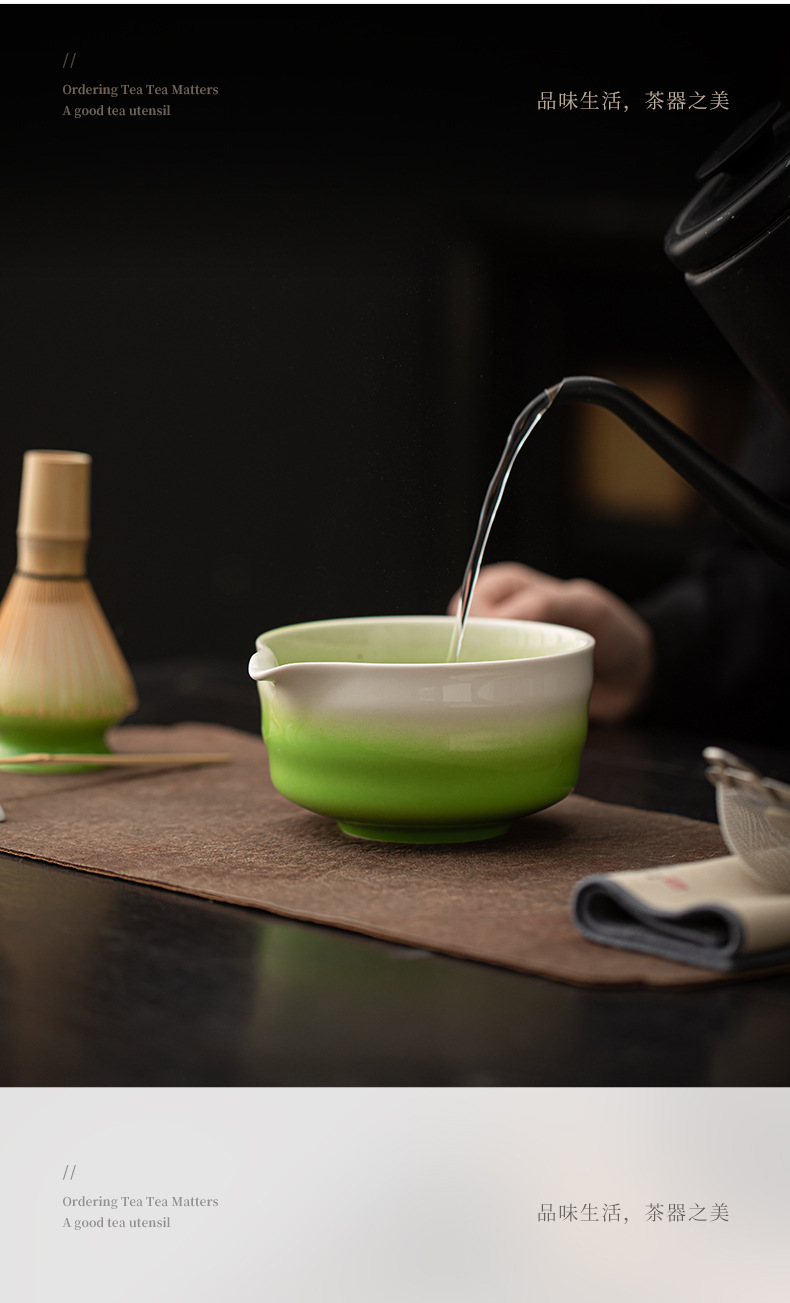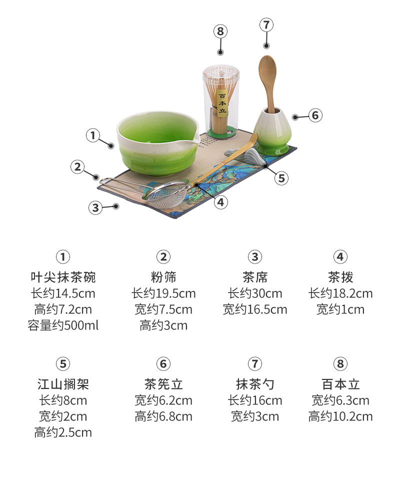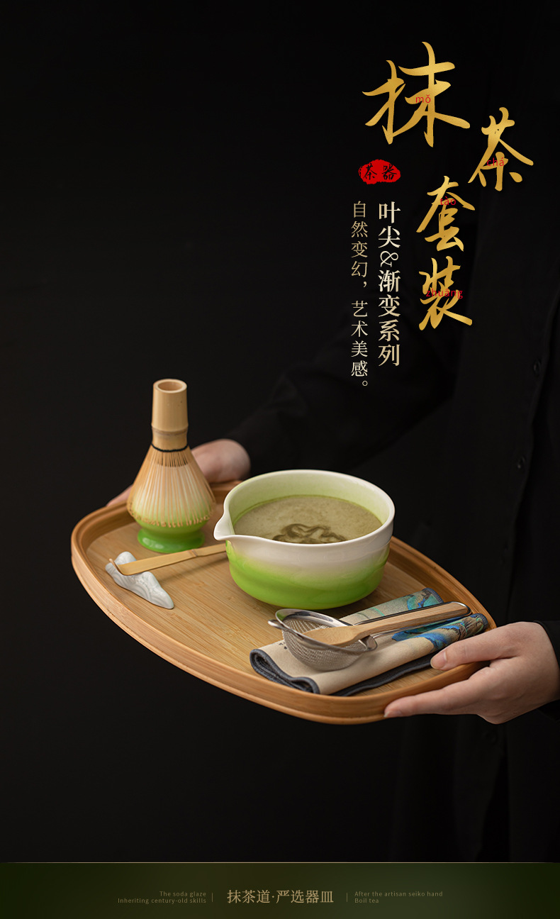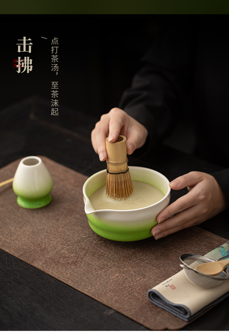 - Yjian Gradient Matcha Bộ tám món Phụ kiện bộ trà gia dụng Giả Song điểm trà đạo trà Baixi bát trà bàn chải lọc