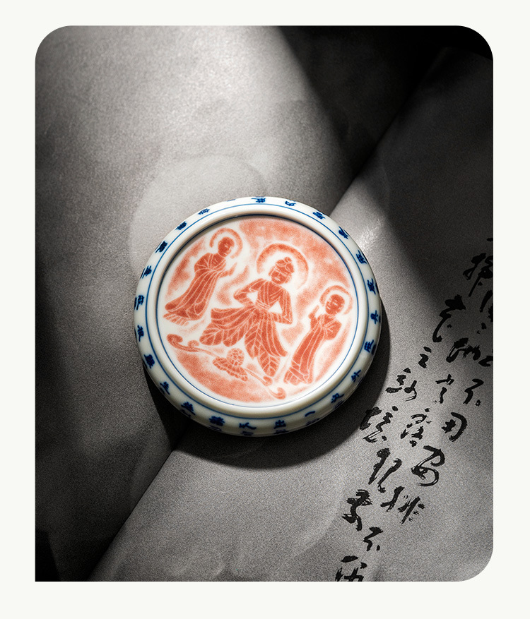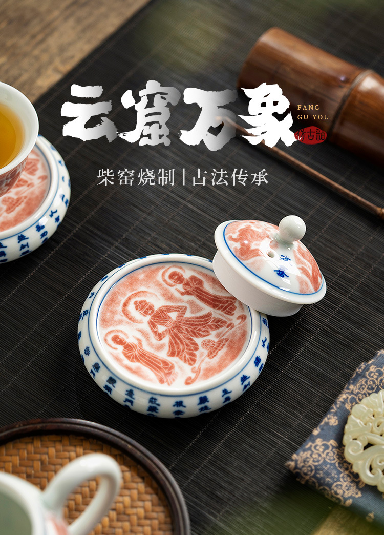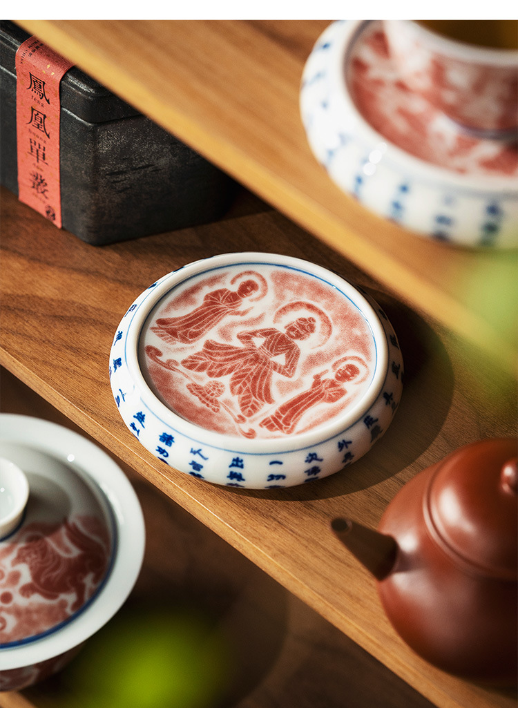 云窟柴烧拓印盖置盖托陶瓷壶承杯盖子盖碗托中式功夫茶具配件杯垫