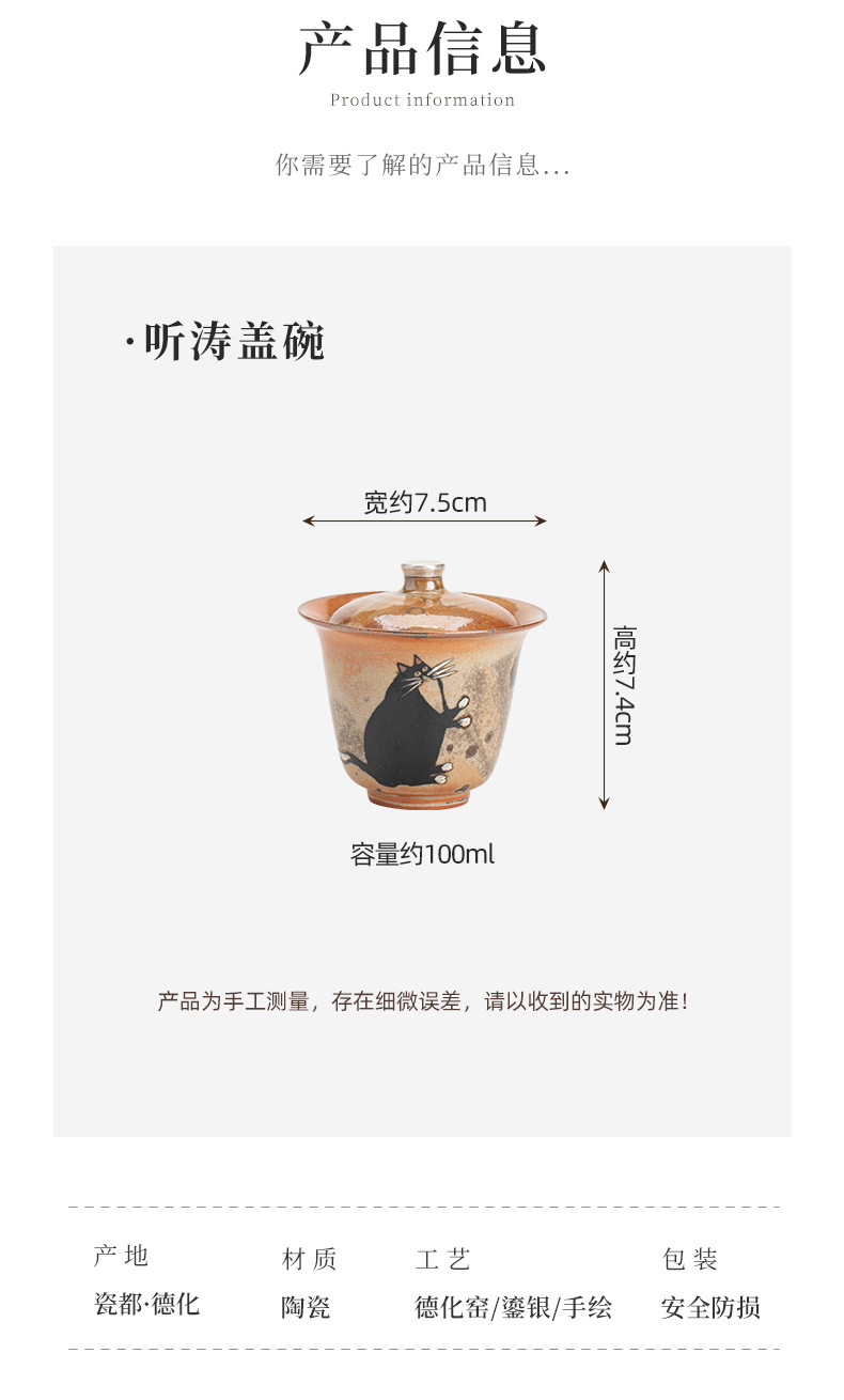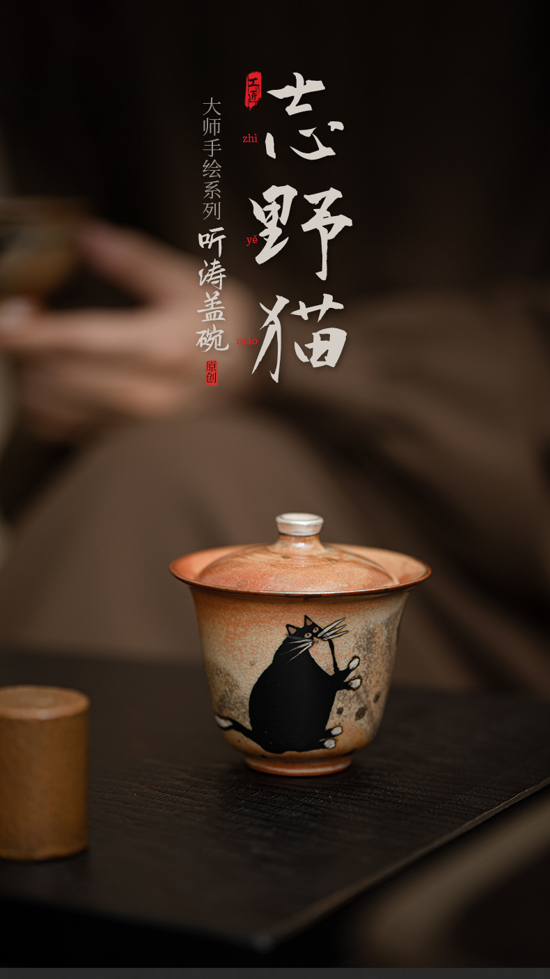 Zhiye Cat Tingtao Nắp bát thay đổi thứ hai Nắp bát sứ Retro gốm sứ pha trà chén trà Giả Gỗ Thủ Công Bạc vẽ tay