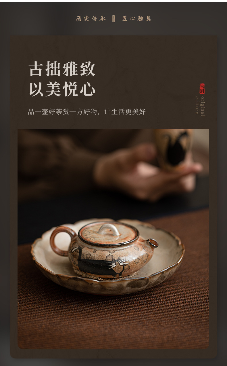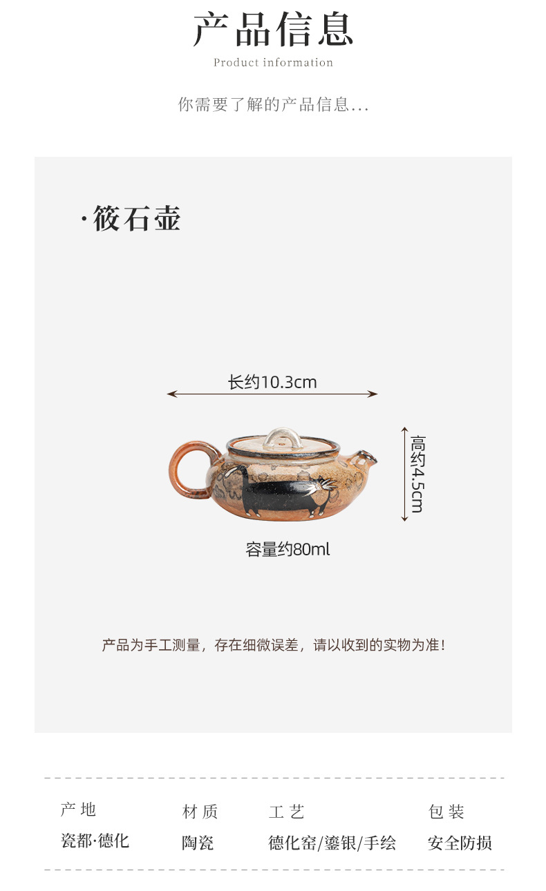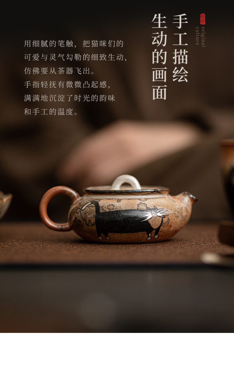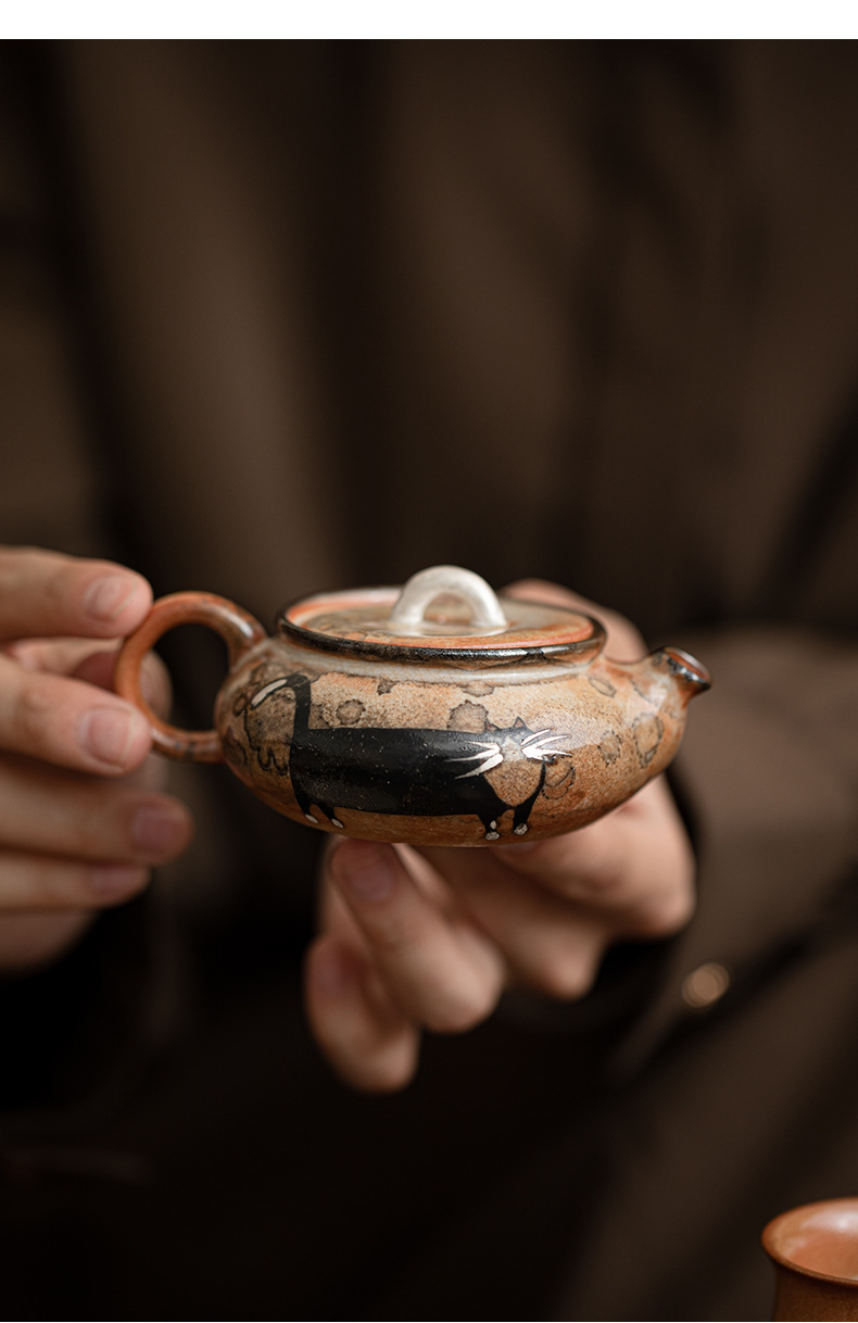 Zhiye Cat Xiaoshi Ấm trà gốm sứ mini nhỏ Lỗ Bóng lọc pha trà ấm đơn thay đổi cổ điển vẽ tay bạc