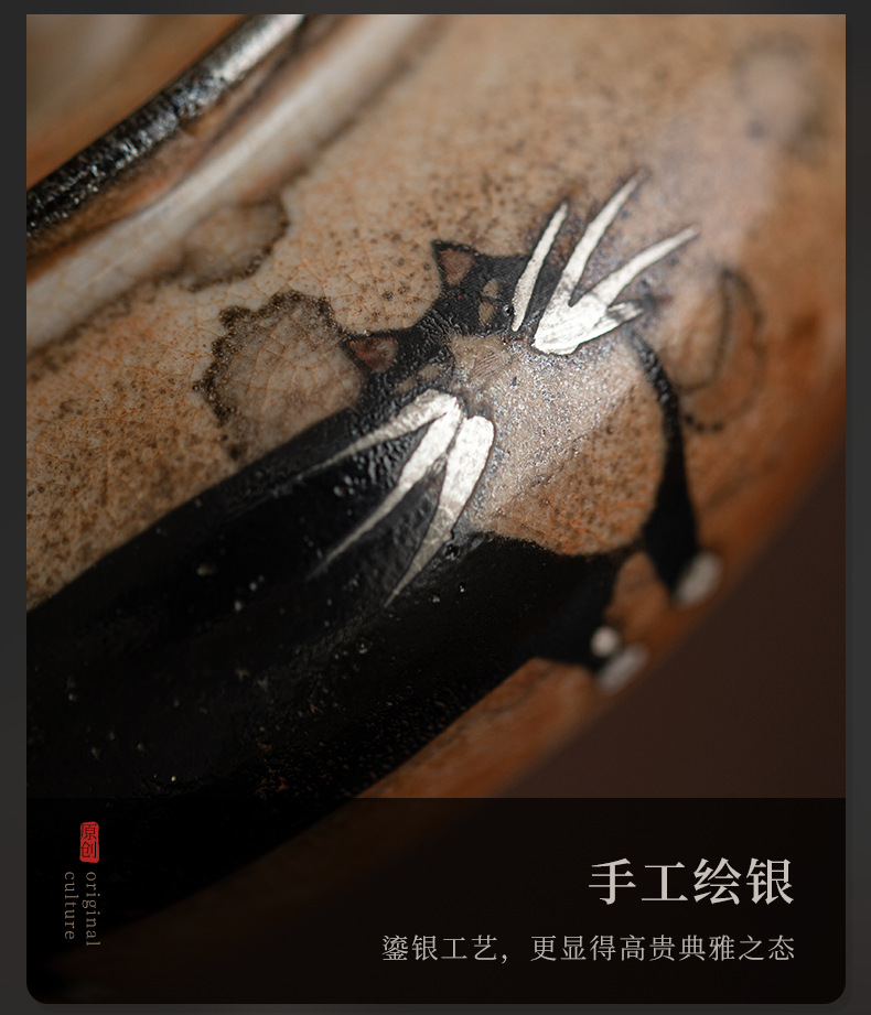 - Zhiye Cat Xiaoshi Ấm trà gốm sứ mini nhỏ Lỗ Bóng lọc pha trà ấm đơn thay đổi cổ điển vẽ tay bạc
