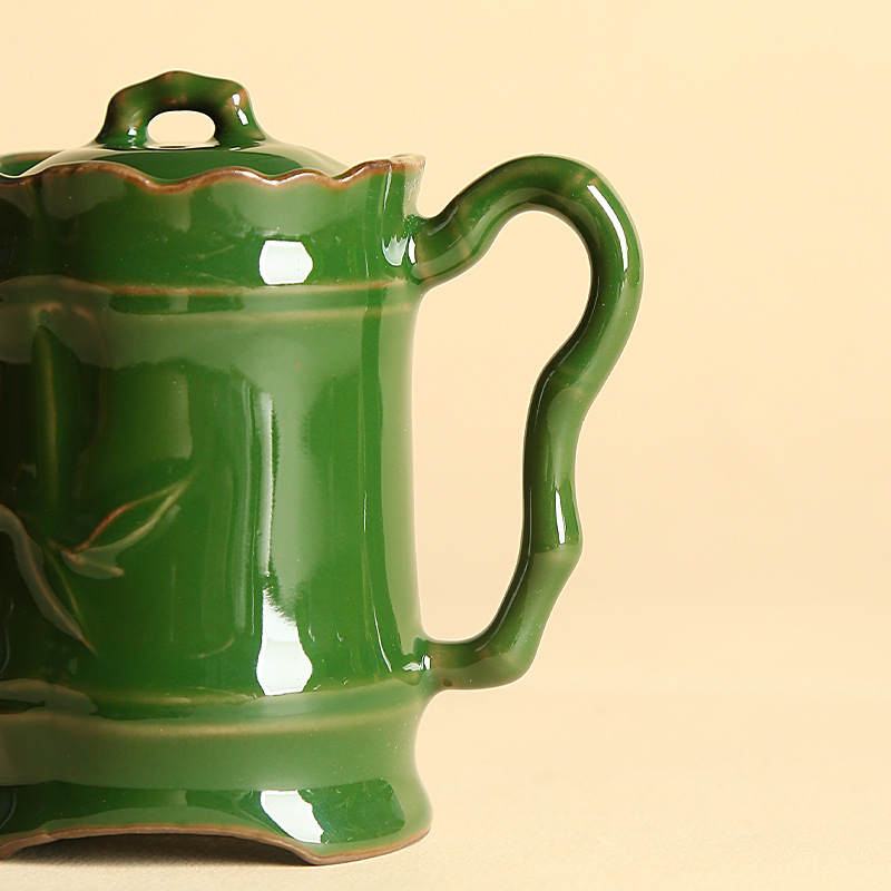 - Zhuang Chui Renlang Green Bộ trà gốm lò chính thức được làm thủ công bằng đất sét khoáng thô Đế sắt Ấm trà kiểu tre Ấm trà khớp tre Tinh tế.