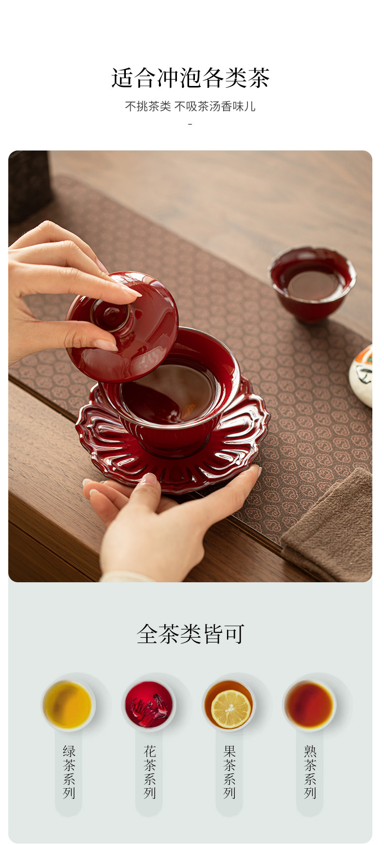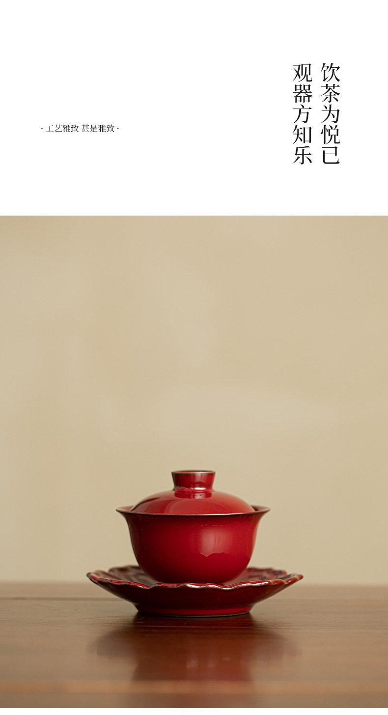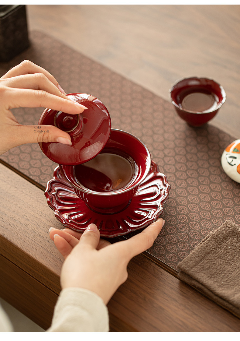 Zhuang Chuiren quặng thô bào thai sắt Tử Cấm Thành màu đỏ hình hoa sen tám cánh ba chỉ có nắp bát gốm sứ pha trà chén trà
