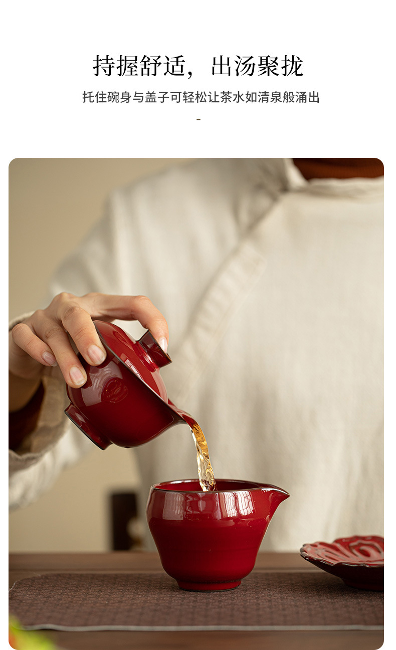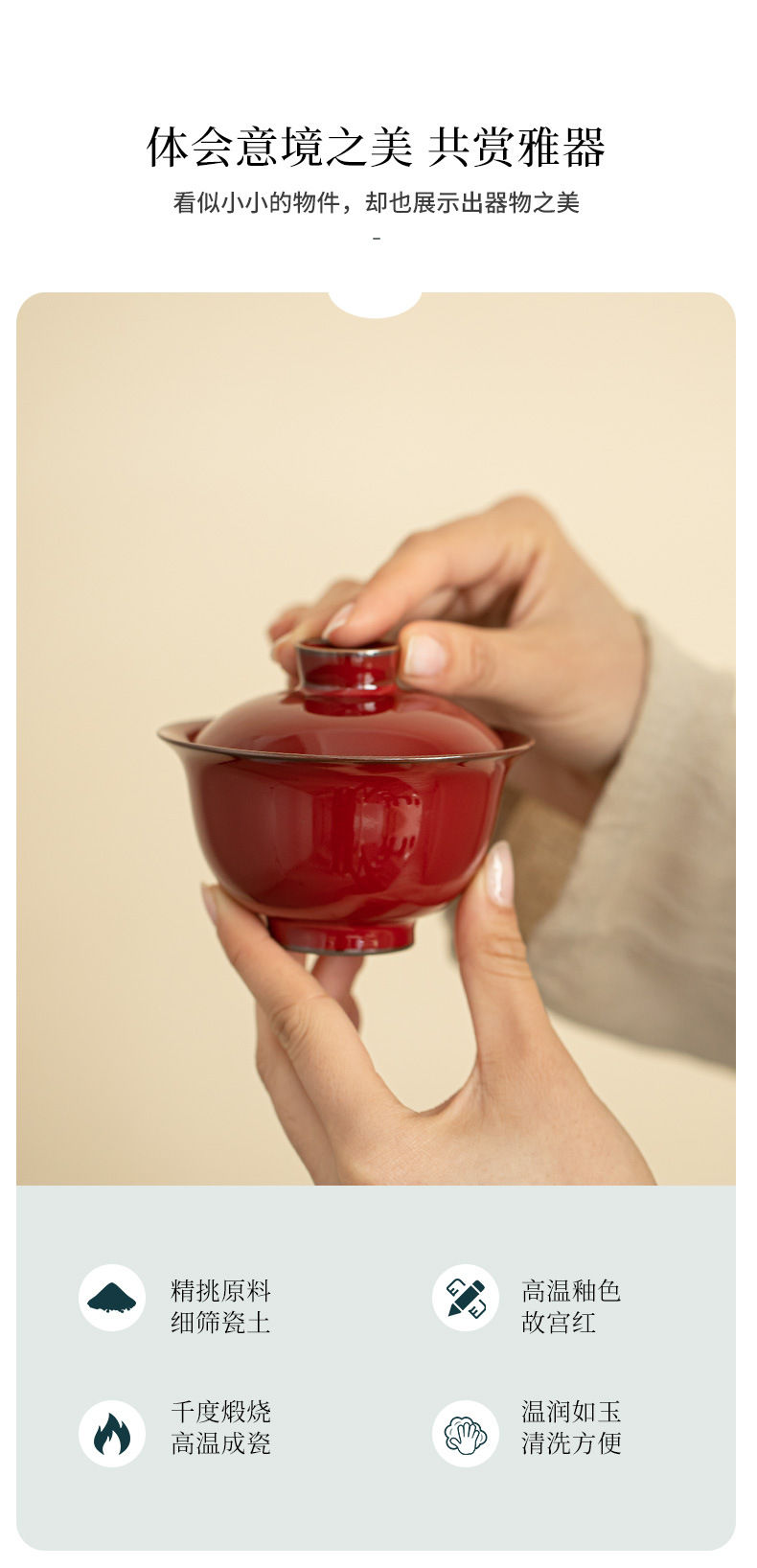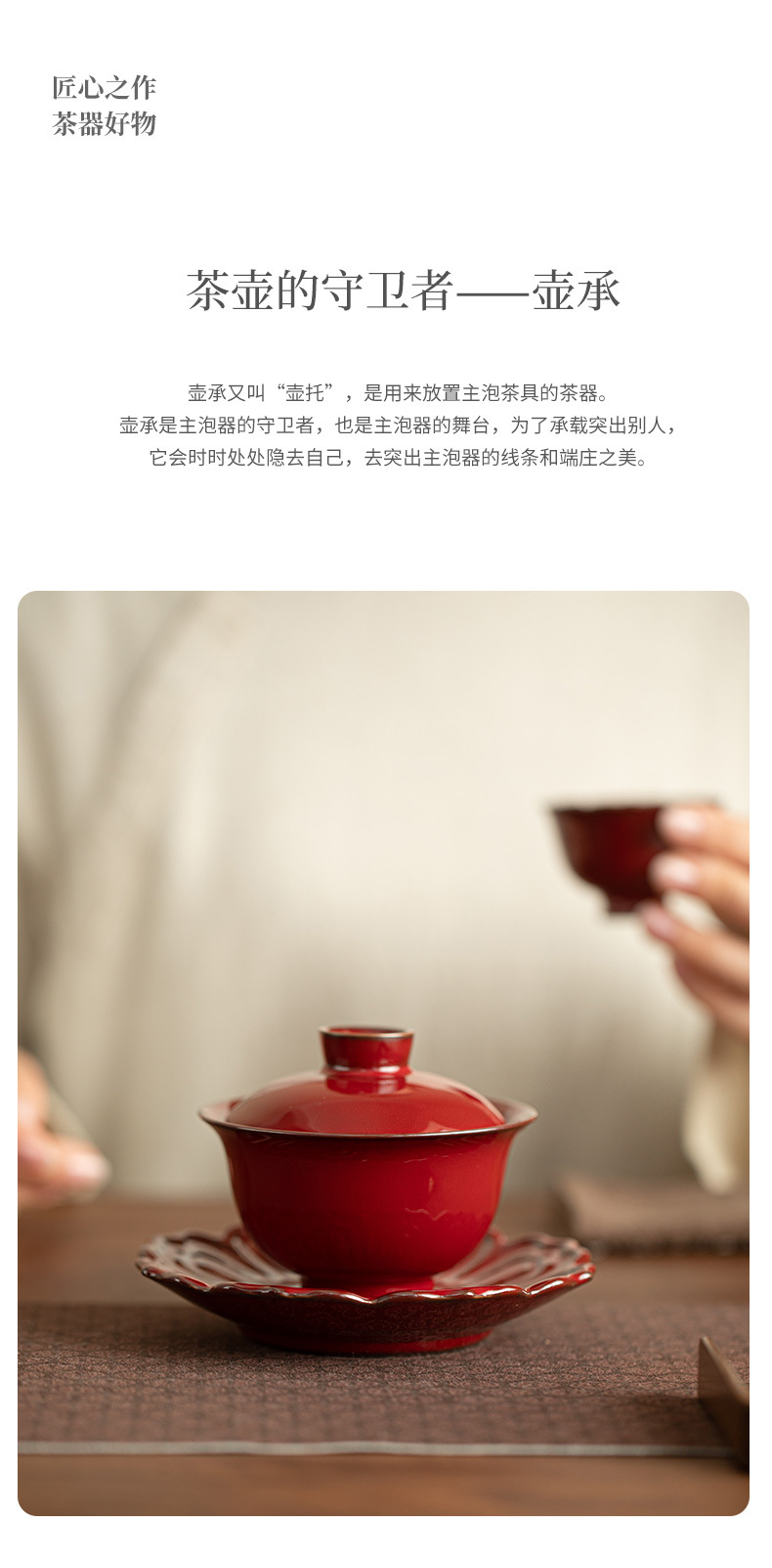 Zhuang Chuiren quặng thô bào thai sắt Tử Cấm Thành màu đỏ hình hoa sen tám cánh ba chỉ có nắp bát gốm sứ pha trà chén trà