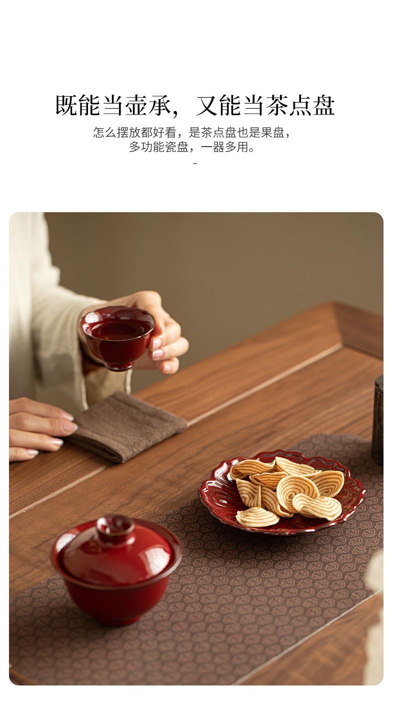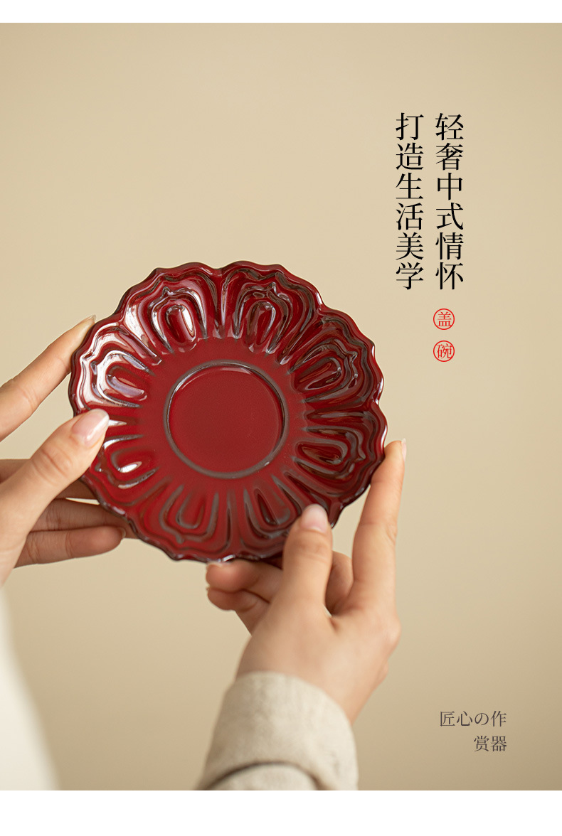 - Zhuang Chuiren quặng thô bào thai sắt Tử Cấm Thành màu đỏ hình hoa sen tám cánh ba chỉ có nắp bát gốm sứ pha trà chén trà