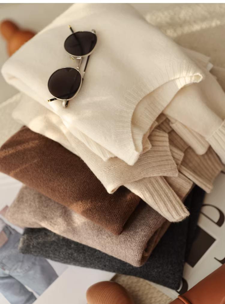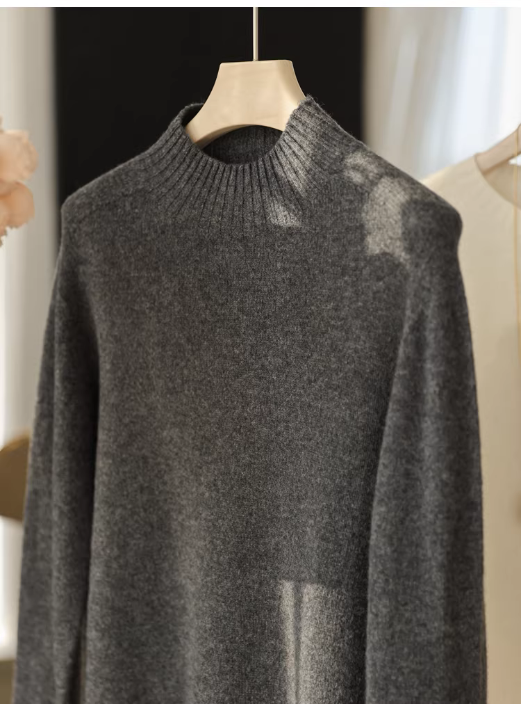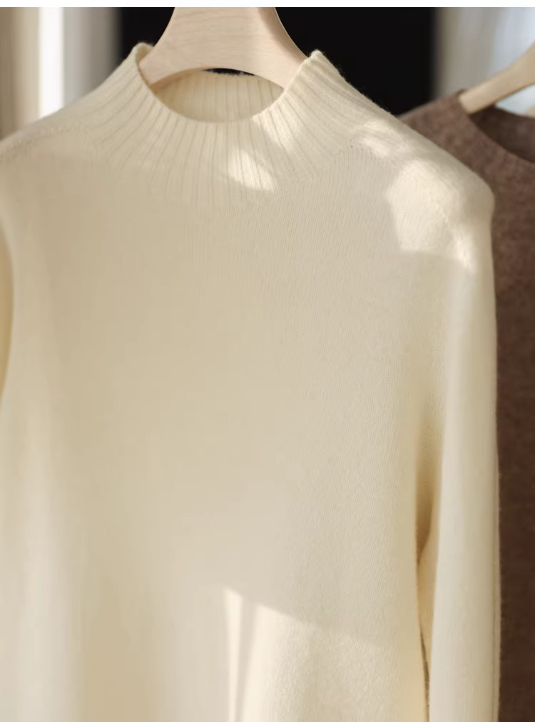 - 11,1% cashmere + 88,9% len cừu! Áo len dệt kim cổ tròn dày dặn, cổ nửa cao, mềm mại và thân thiện với da dành cho nữ.