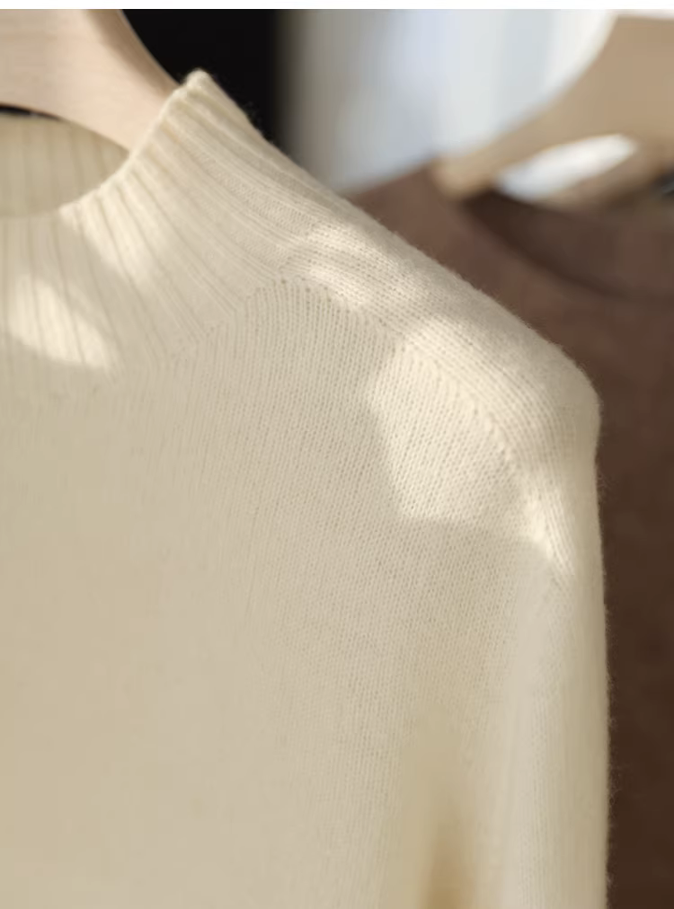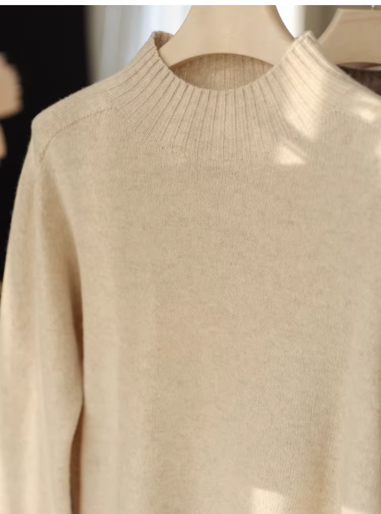 11,1% cashmere + 88,9% len cừu! Áo len dệt kim cổ tròn dày dặn, cổ nửa cao, mềm mại và thân thiện với da dành cho nữ.