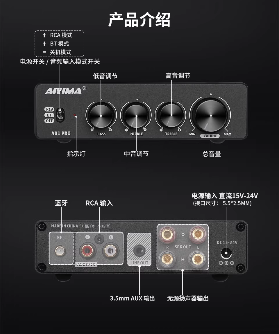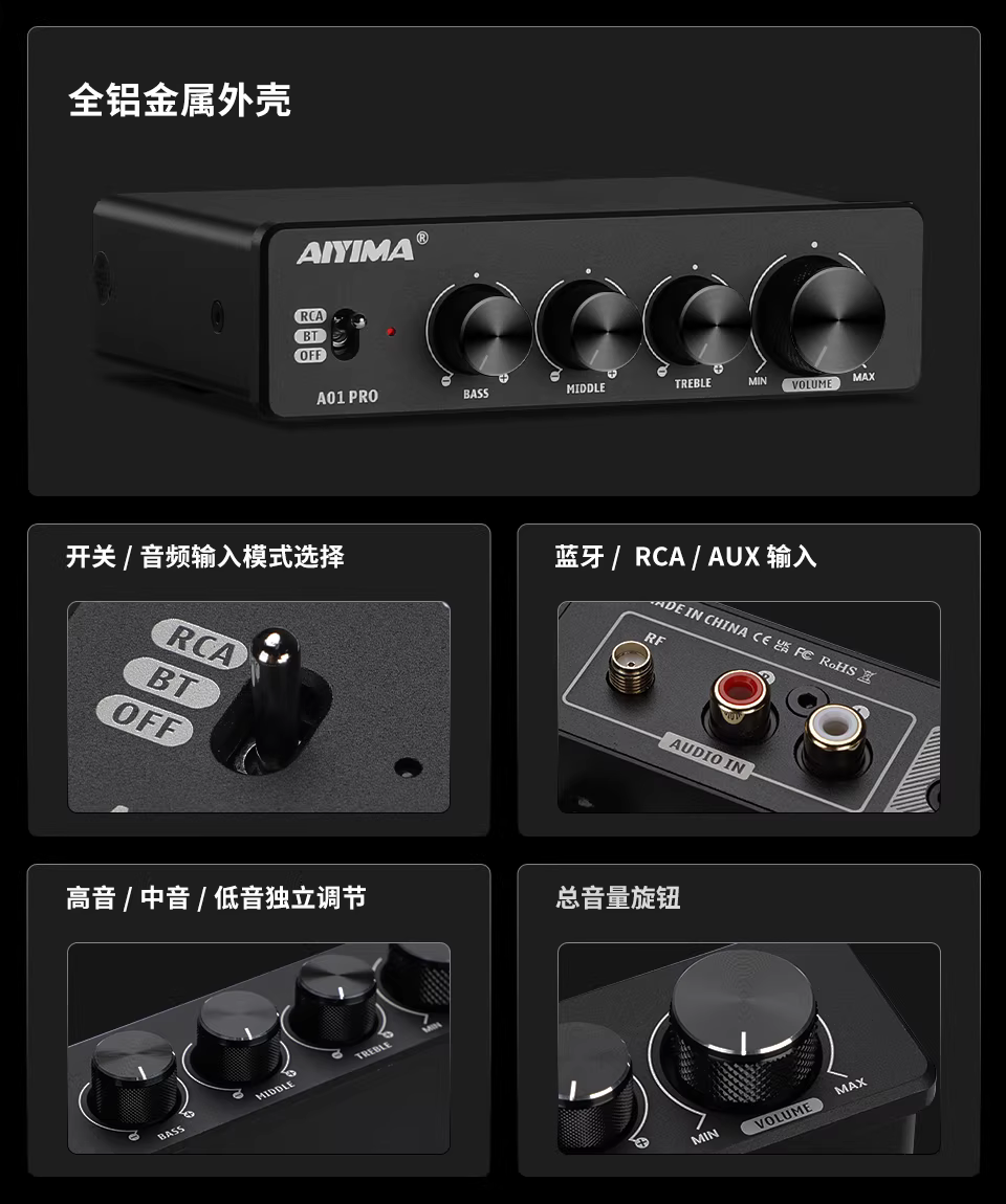 - AIYIMA/Ai Yinman A01pro Bluetooth 5.1 Bộ khuếch đại công suất cao HiFi Bộ khuếch đại công suất lõi kép TPA3116