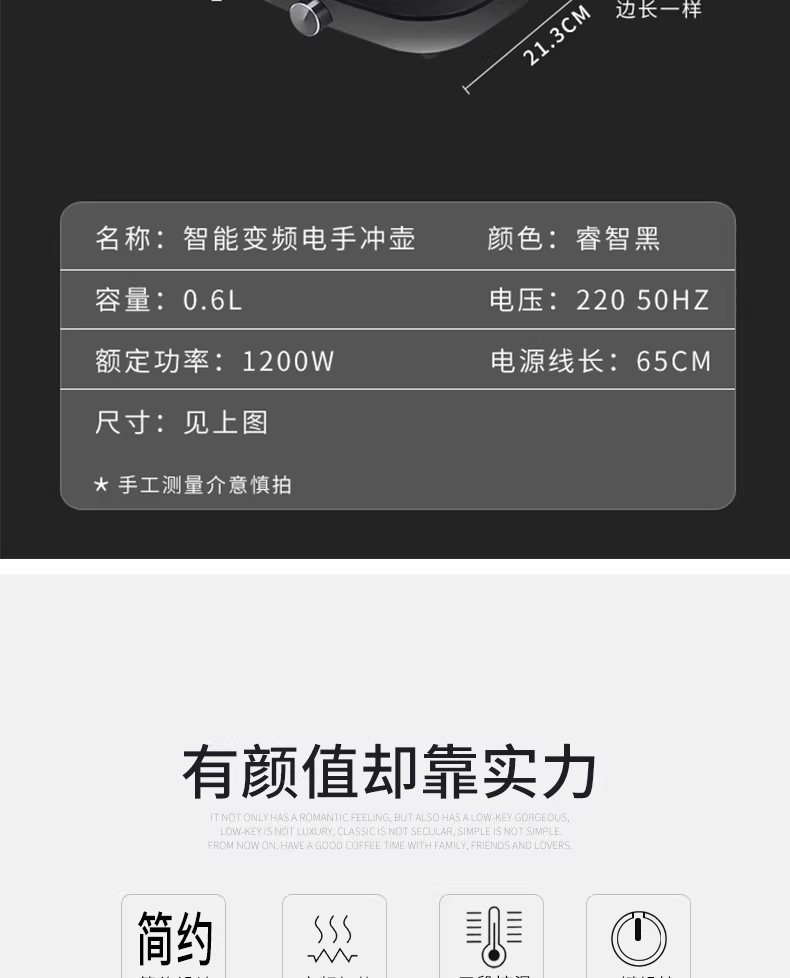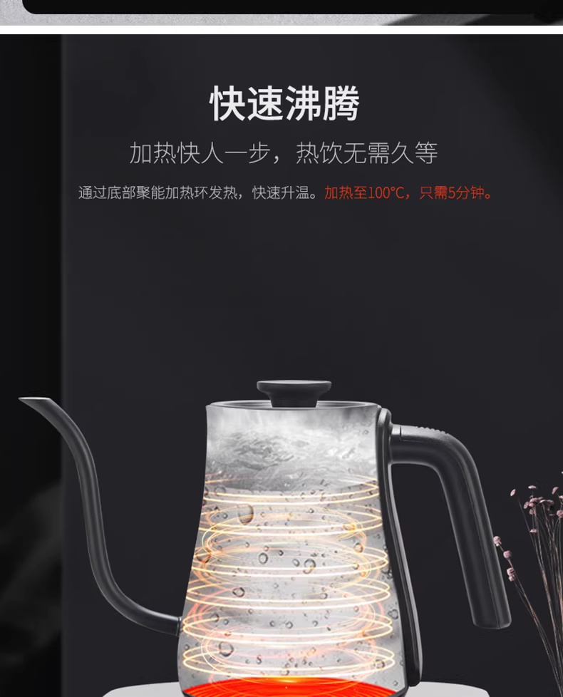 注意:此款电热水壶,由于考虑到部分买家没有直饮水,设计的时候烧水是先烧到100°在降回设定温度,来达到控温的目的
