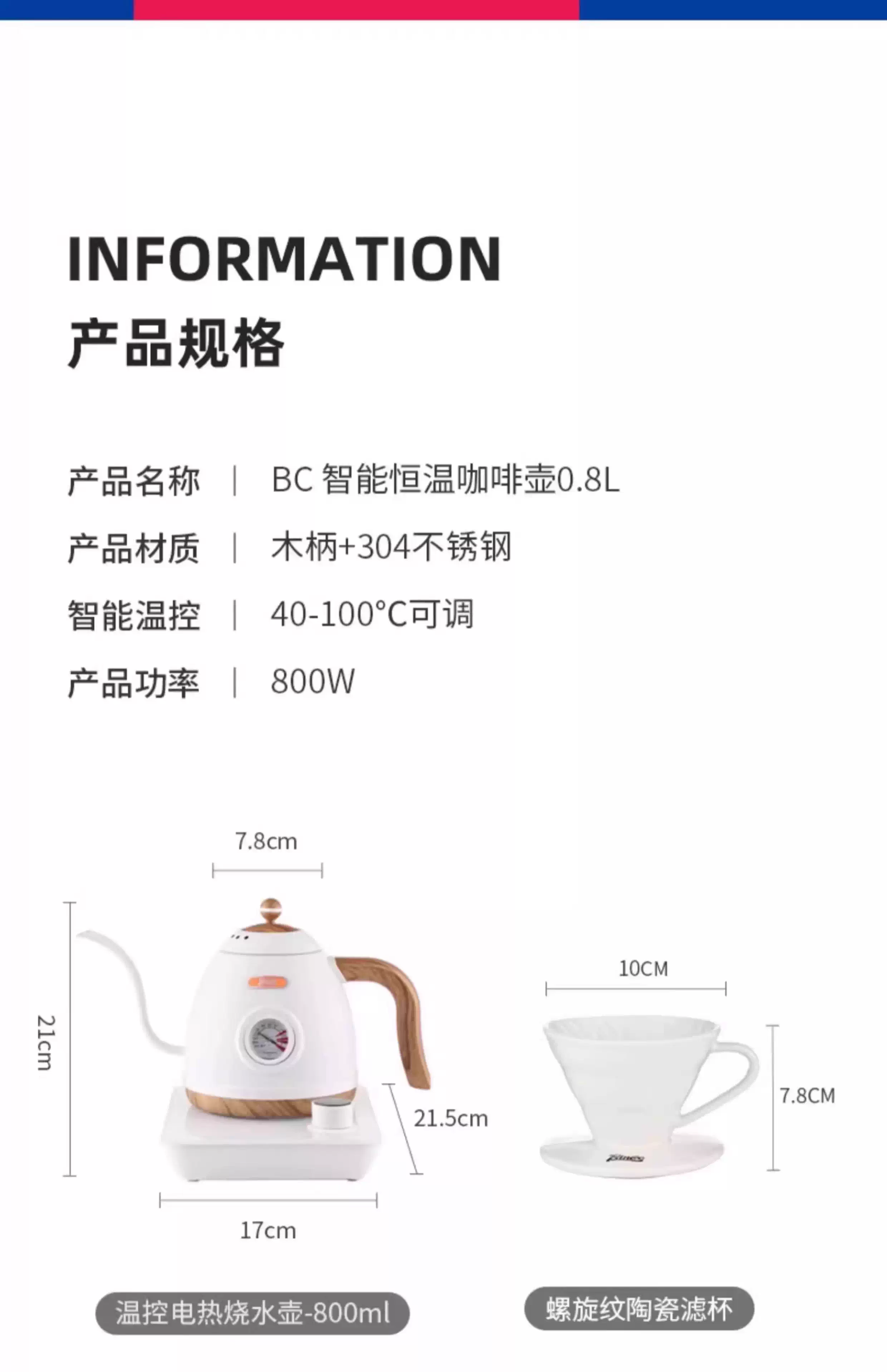 - Ấm pha cà phê thủ công thông minh Bincoo có chức năng điều khiển nhiệt độ, ấm điện, ấm có vòi inox mỏng, ấm pha trà giữ nhiệt độ ổn định.