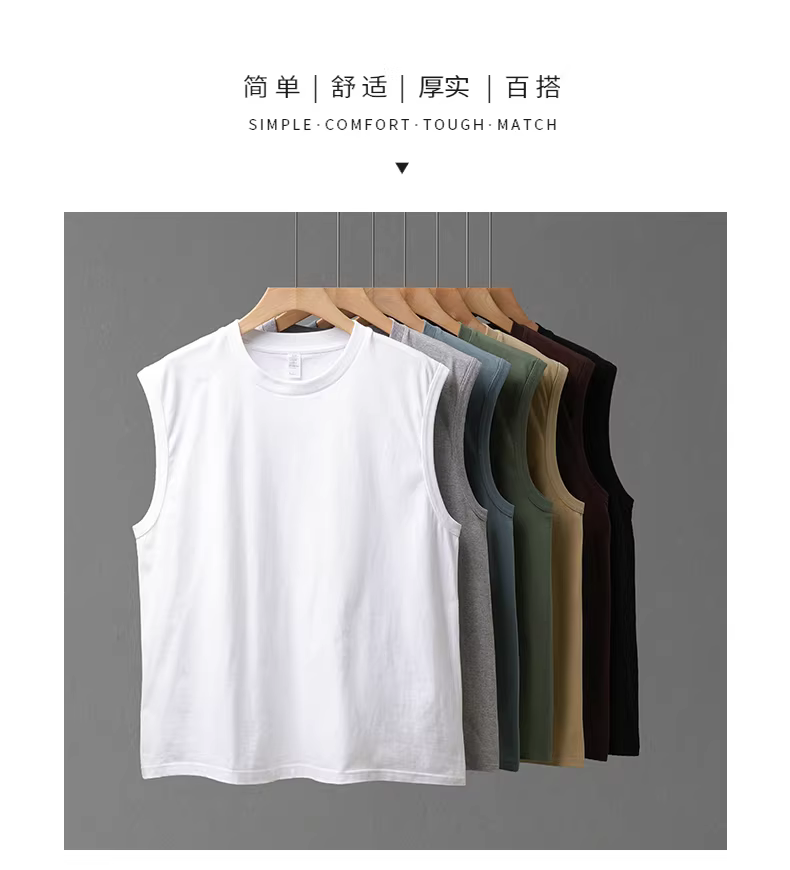 - Áo ba lỗ nam cotton 100% dày dặn 250G, mùa hè, dáng rộng, cổ tròn, thể thao, tập luyện, màu trắng