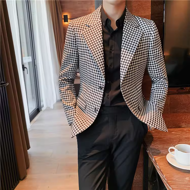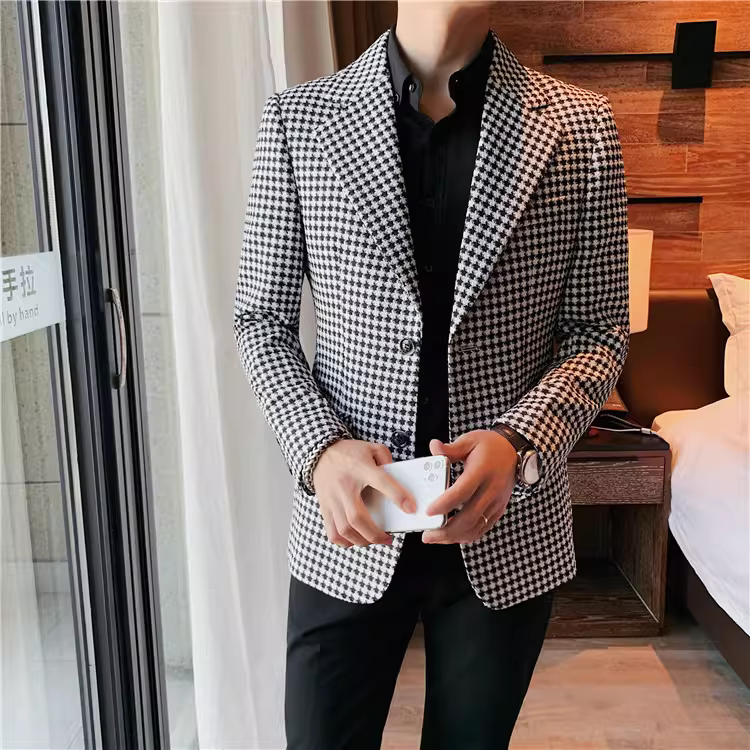 Áo blazer kẻ caro nam, kiểu mới thu đông 2025, thời trang, ôm dáng, lịch lãm, phong cách công sở lịch sự, không nhăn, dễ chăm sóc.