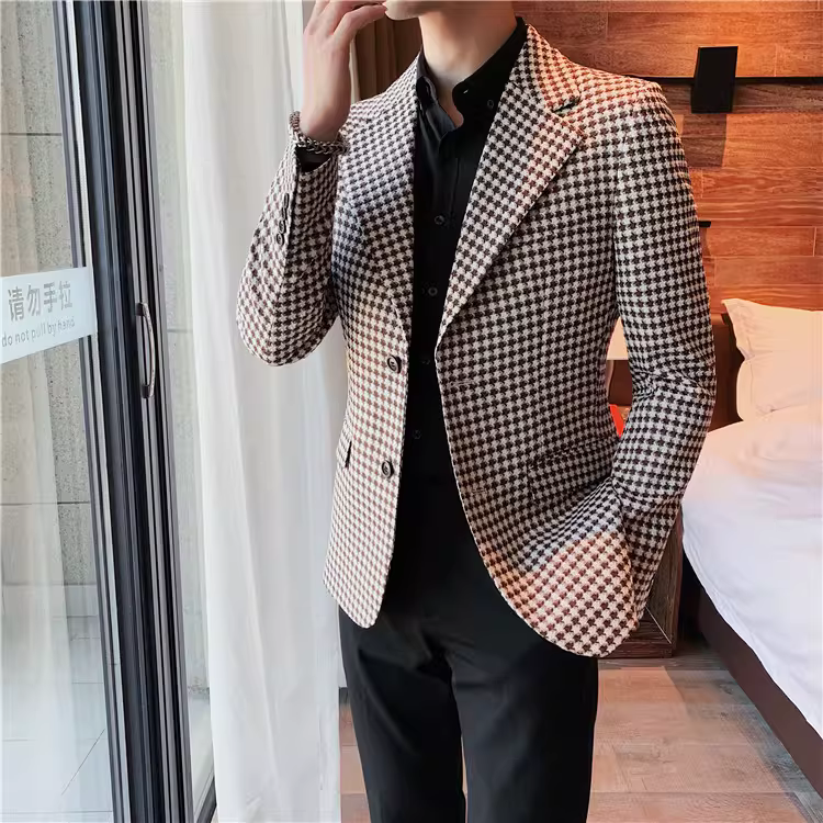 - Áo blazer kẻ caro nam, kiểu mới thu đông 2025, thời trang, ôm dáng, lịch lãm, phong cách công sở lịch sự, không nhăn, dễ chăm sóc.