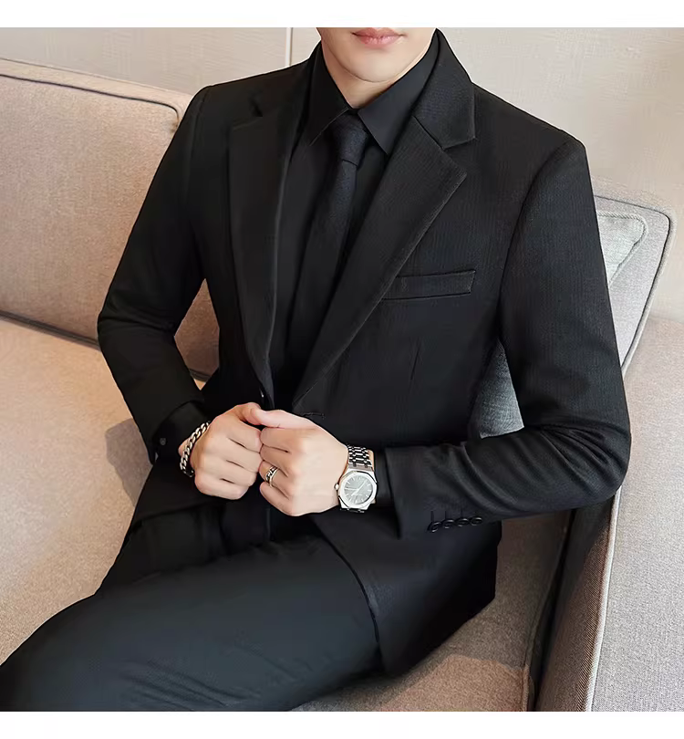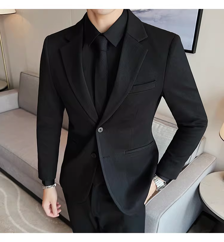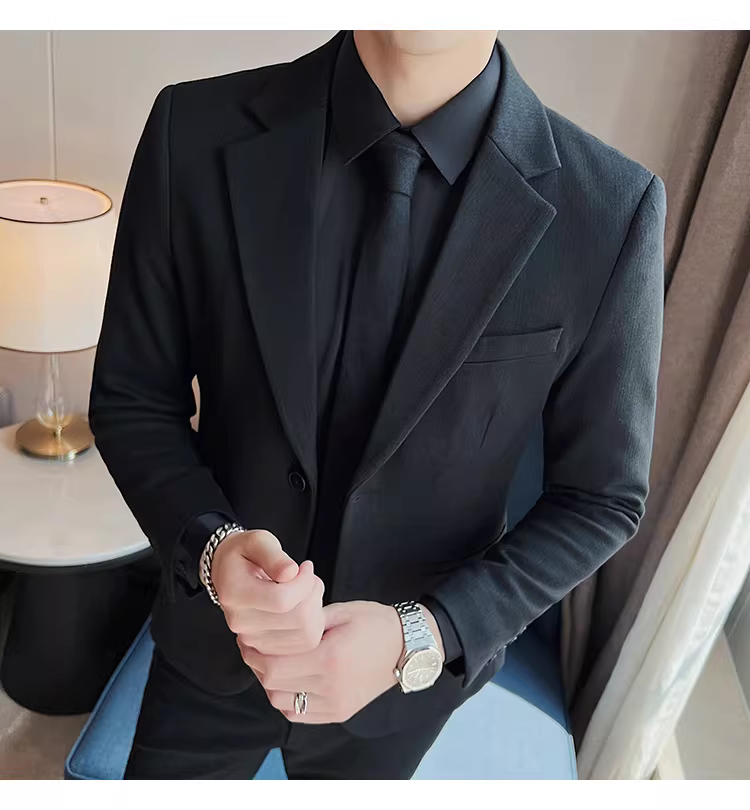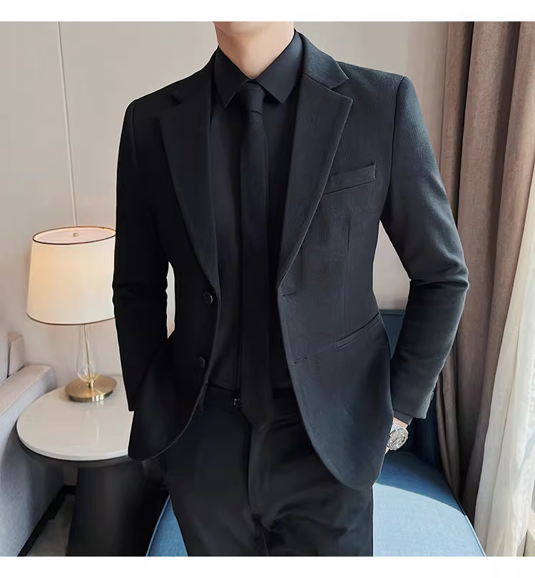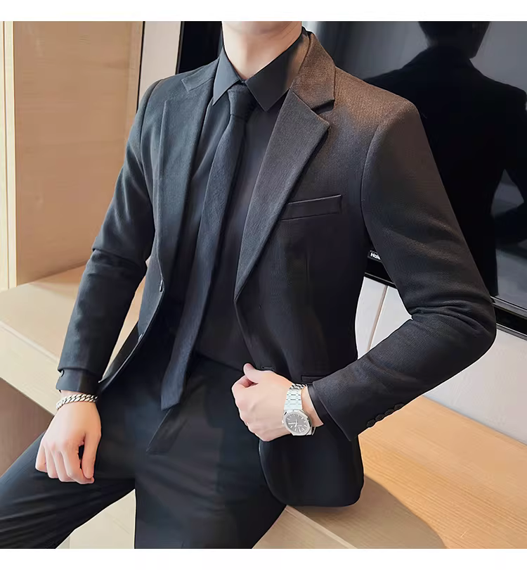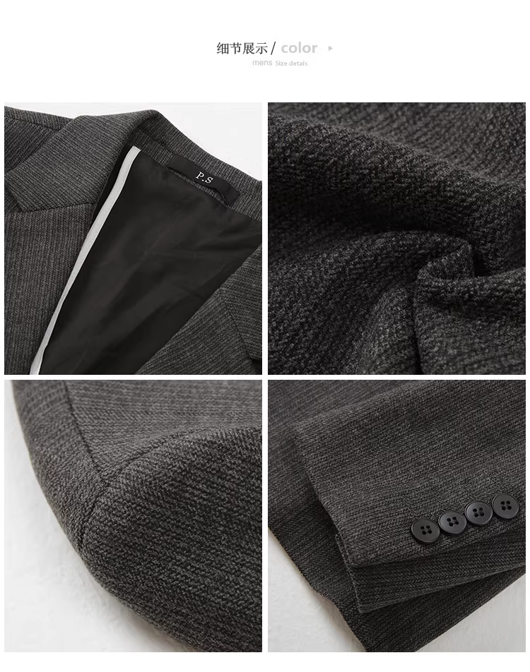 Áo blazer len sọc tối màu dành cho nam, chất liệu dày dặn mùa thu đông, dáng ôm, đơn hàng khuy, kiểu dáng công sở cao cấp.