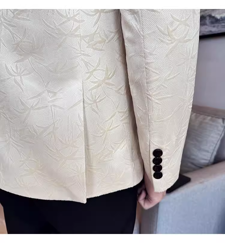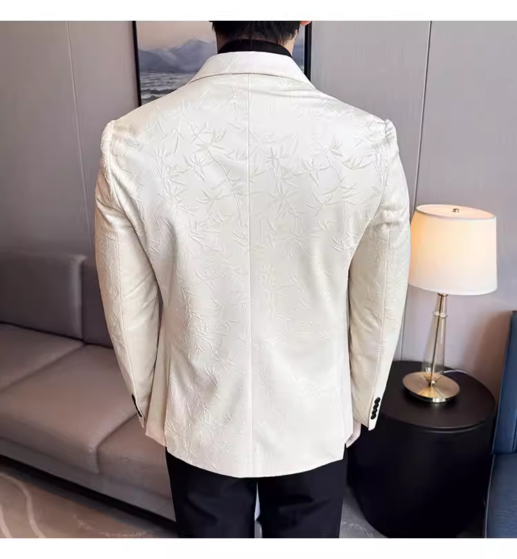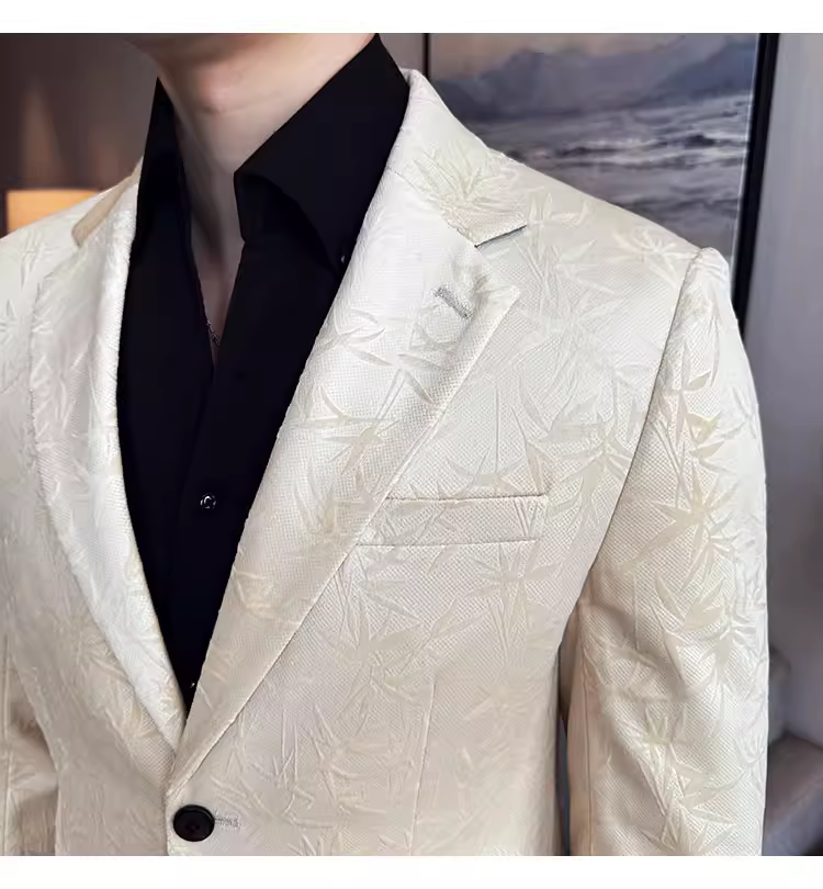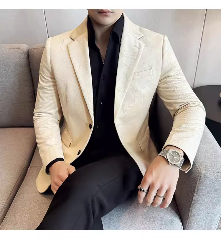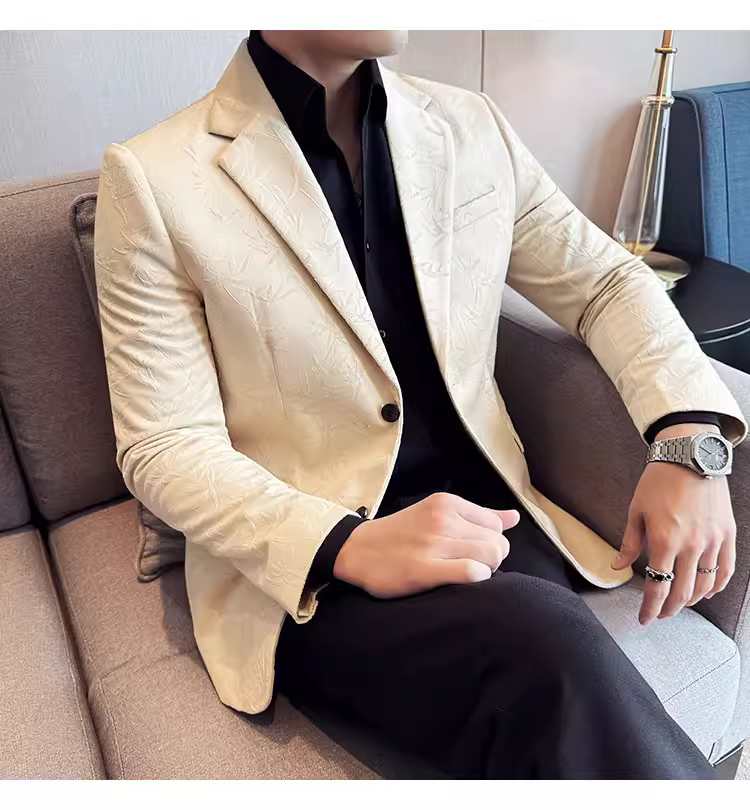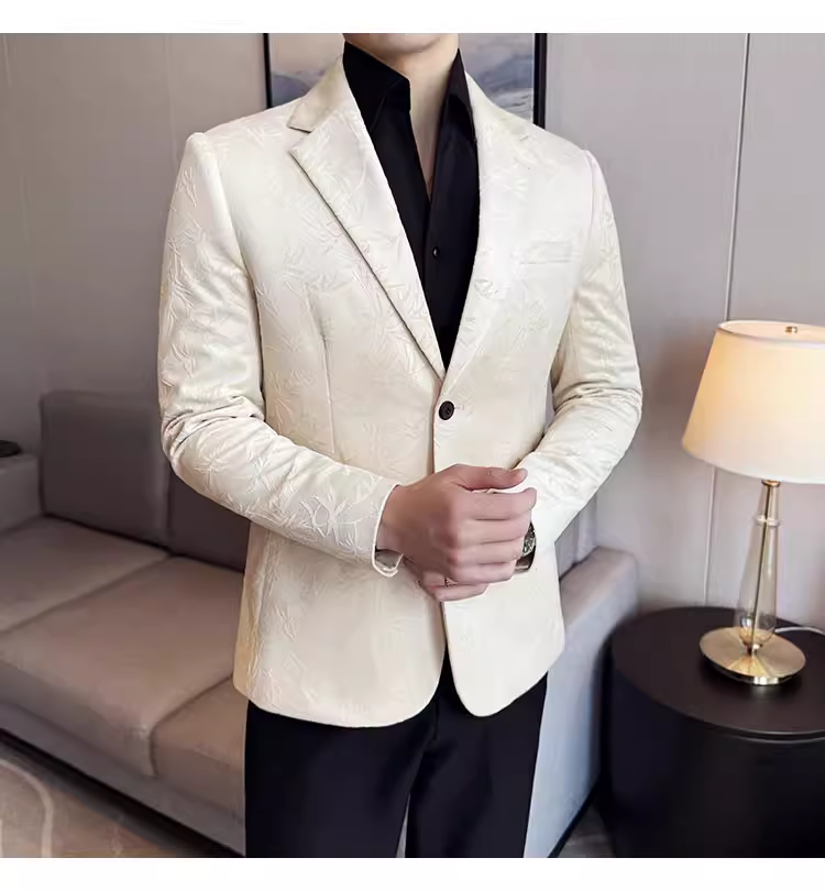 Áo blazer nam chất liệu nhung jacquard, kiểu dáng mới xuân thu, phong cách công sở lịch lãm, đa năng, ôm dáng, thời trang cổ điển.