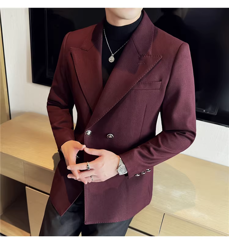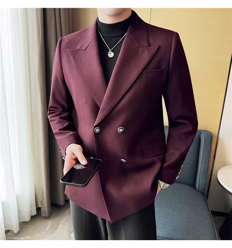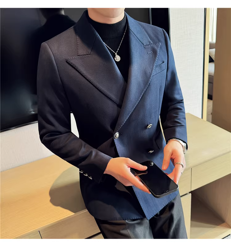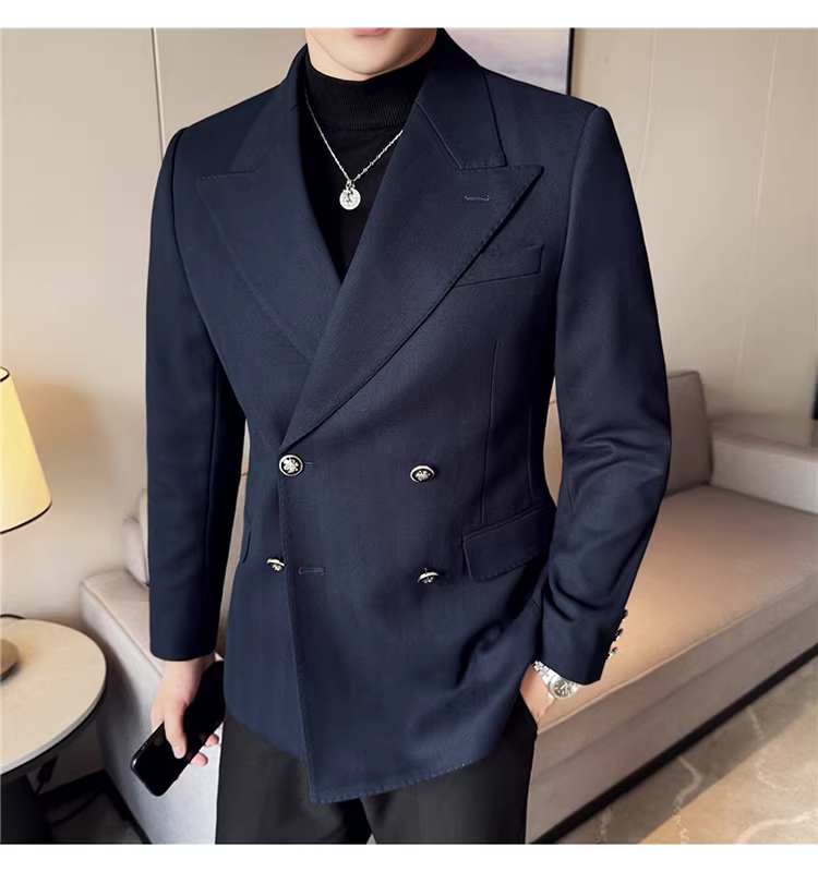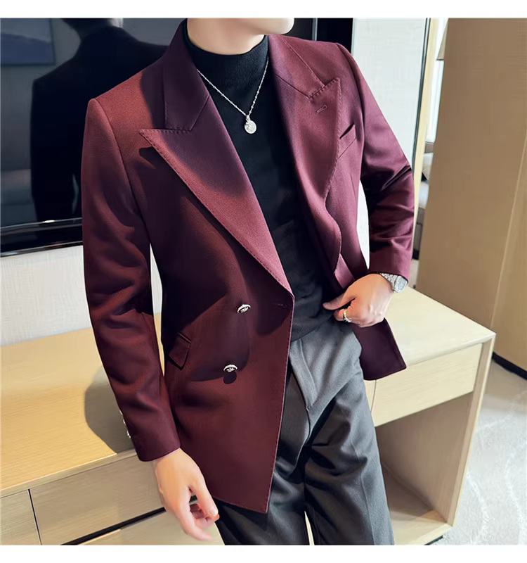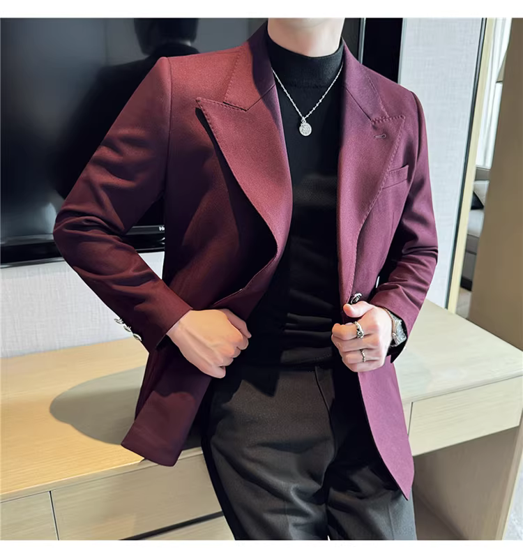 Áo blazer nam dáng dài, dày dặn, kiểu mới thu đông 2024, phong cách công sở lịch lãm, ôm dáng.