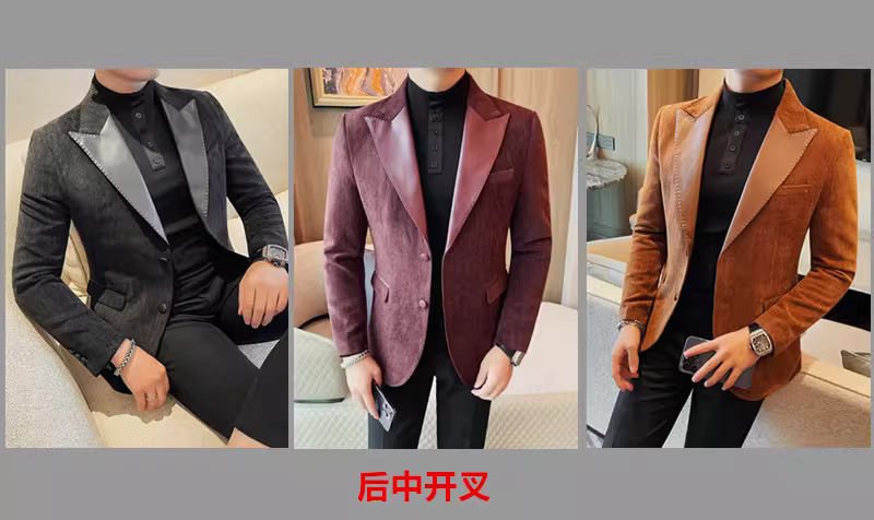 - Áo blazer nam phối da, kiểu mới thu đông 2024, phong cách công sở lịch lãm, đa năng, dáng ôm, chất liệu cao cấp