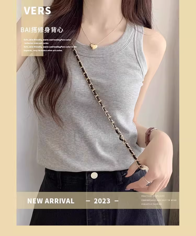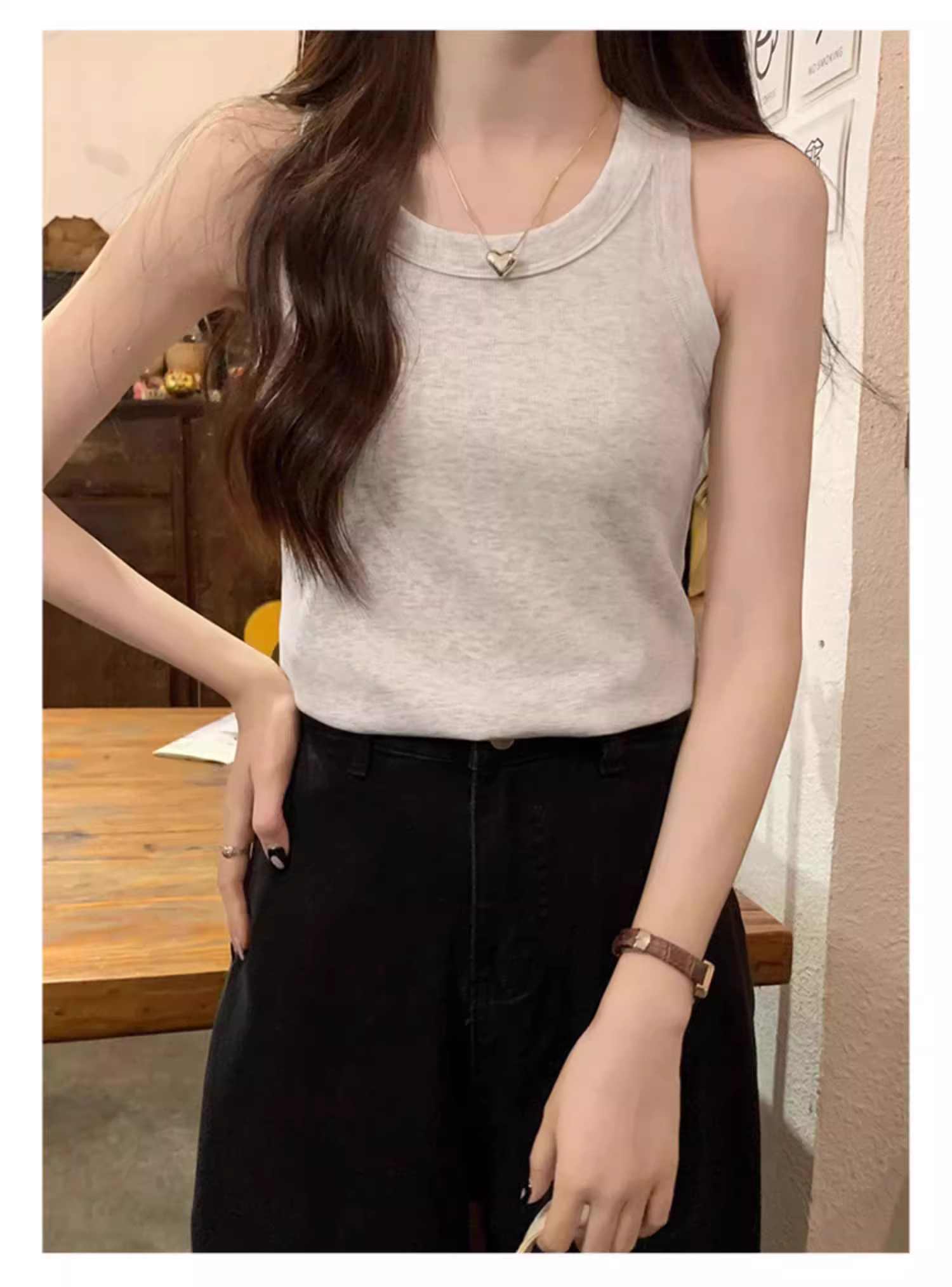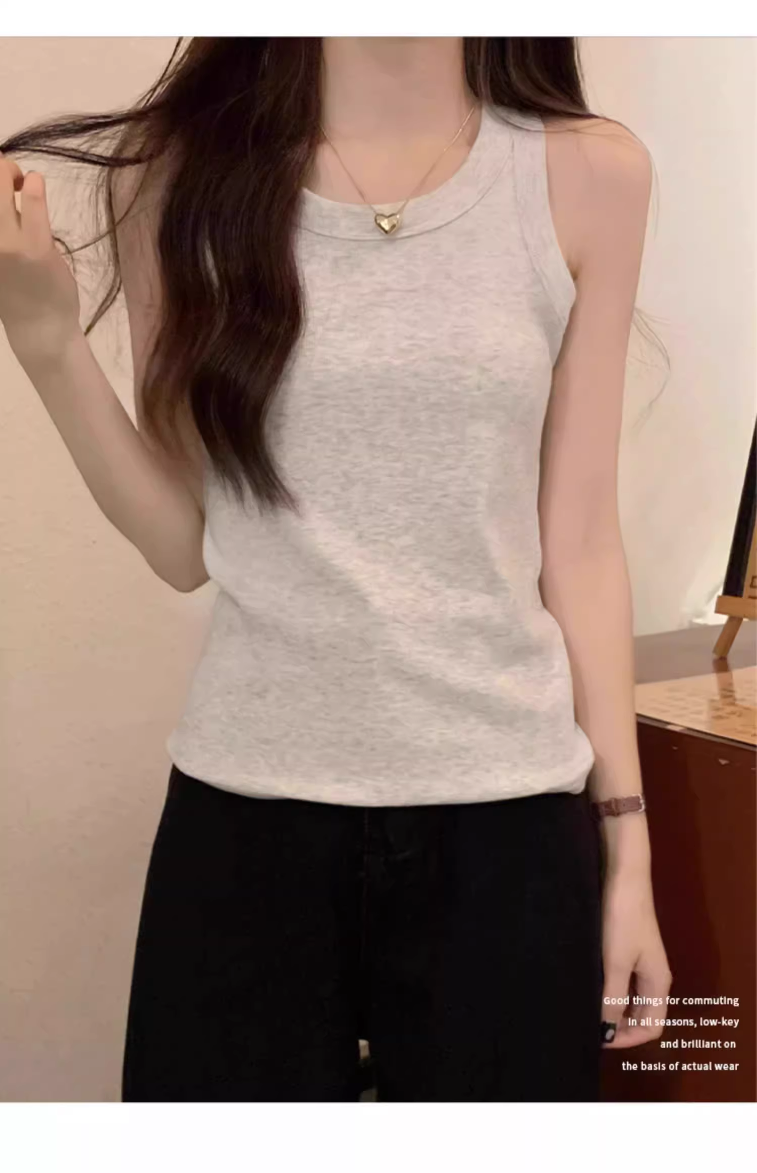 - Áo camisole màu xám La Chapelle dành cho nữ, kiểu dáng mùa hè mới 2025, áo không tay ôm dáng mặc ngoài.