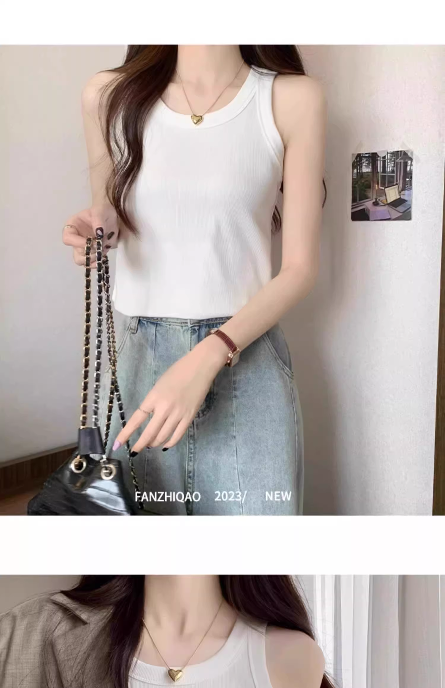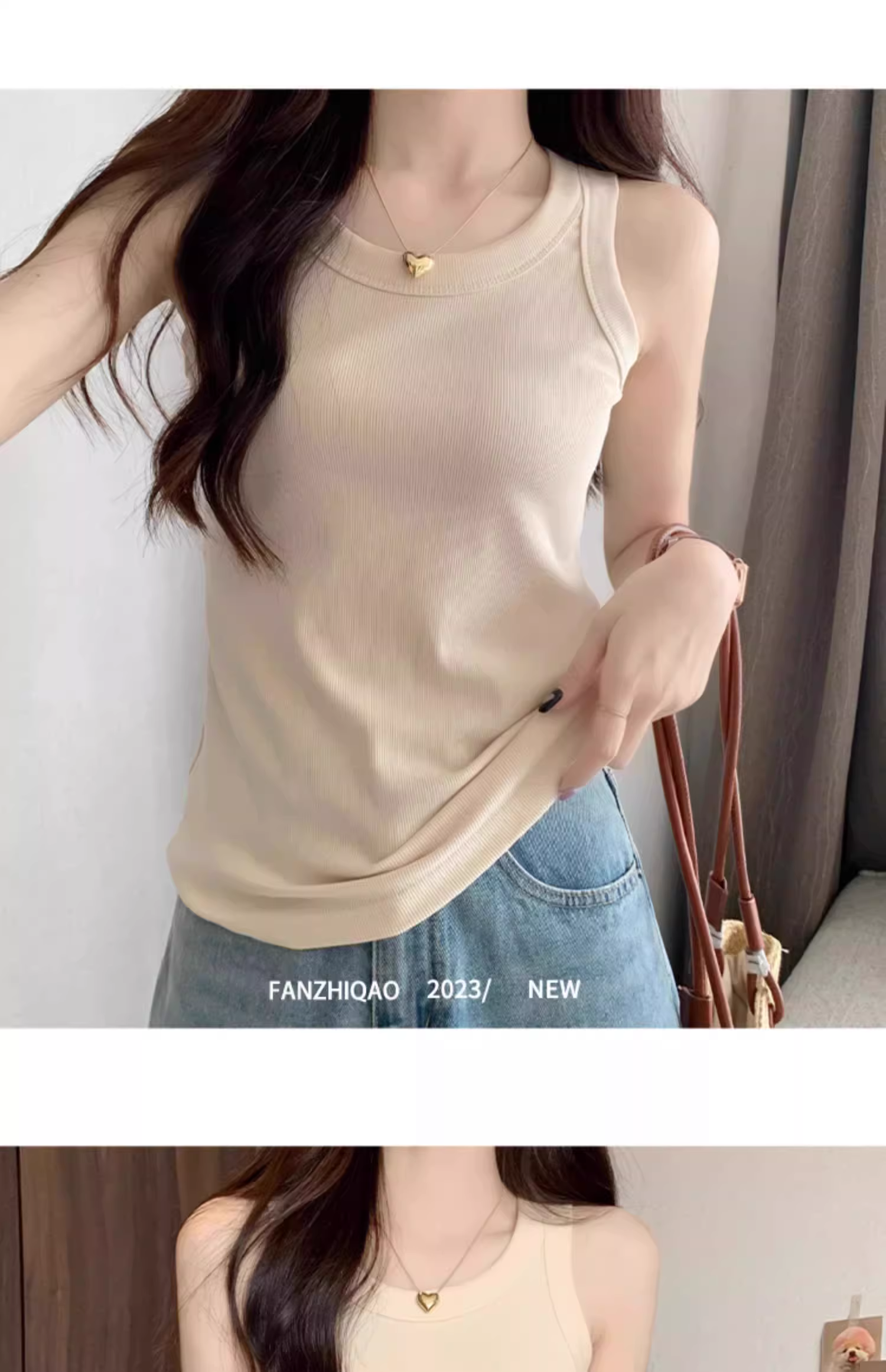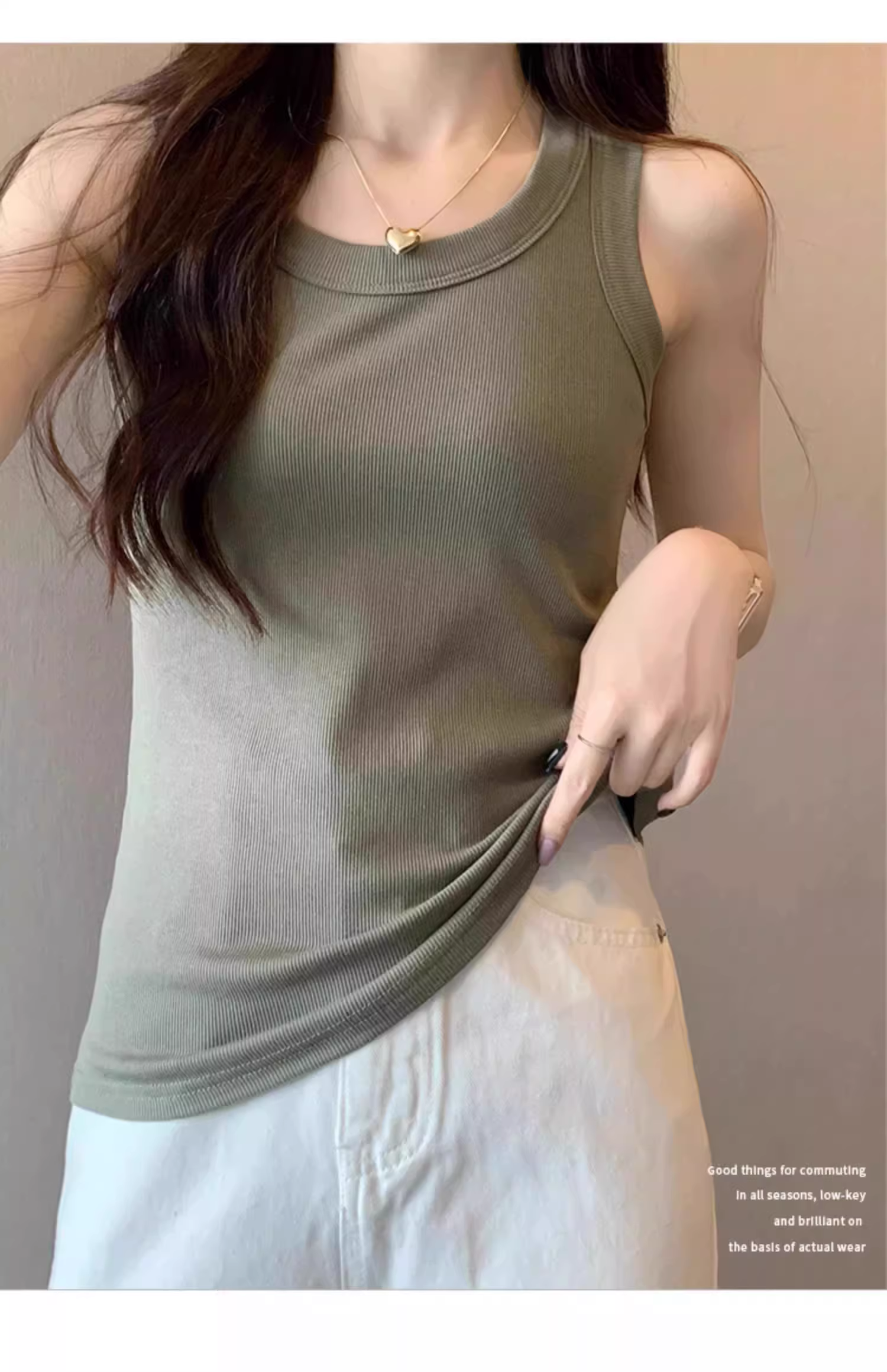 - Áo camisole màu xám La Chapelle dành cho nữ, kiểu dáng mùa hè mới 2025, áo không tay ôm dáng mặc ngoài.