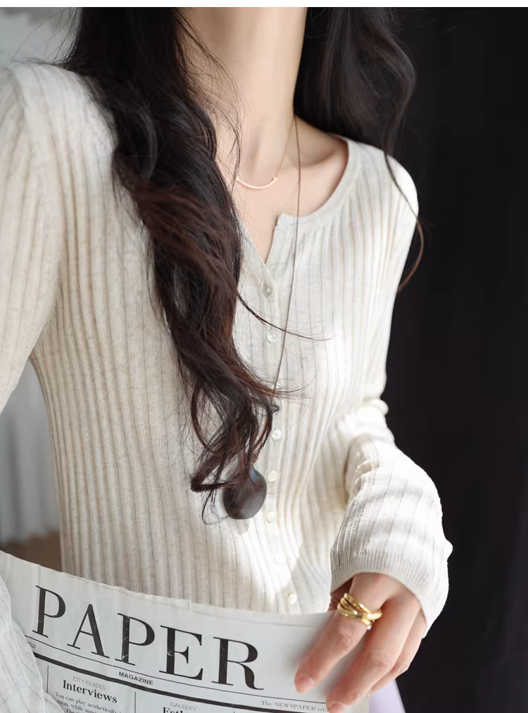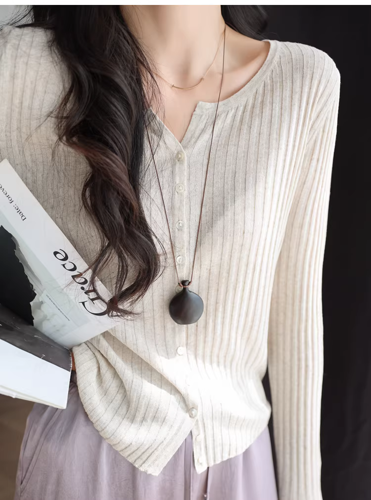 - Áo cardigan dệt kim cổ tròn chất liệu vải lanh Lyocell thoáng khí, ôm dáng, mỏng nhẹ, dành cho nữ mùa xuân/hè