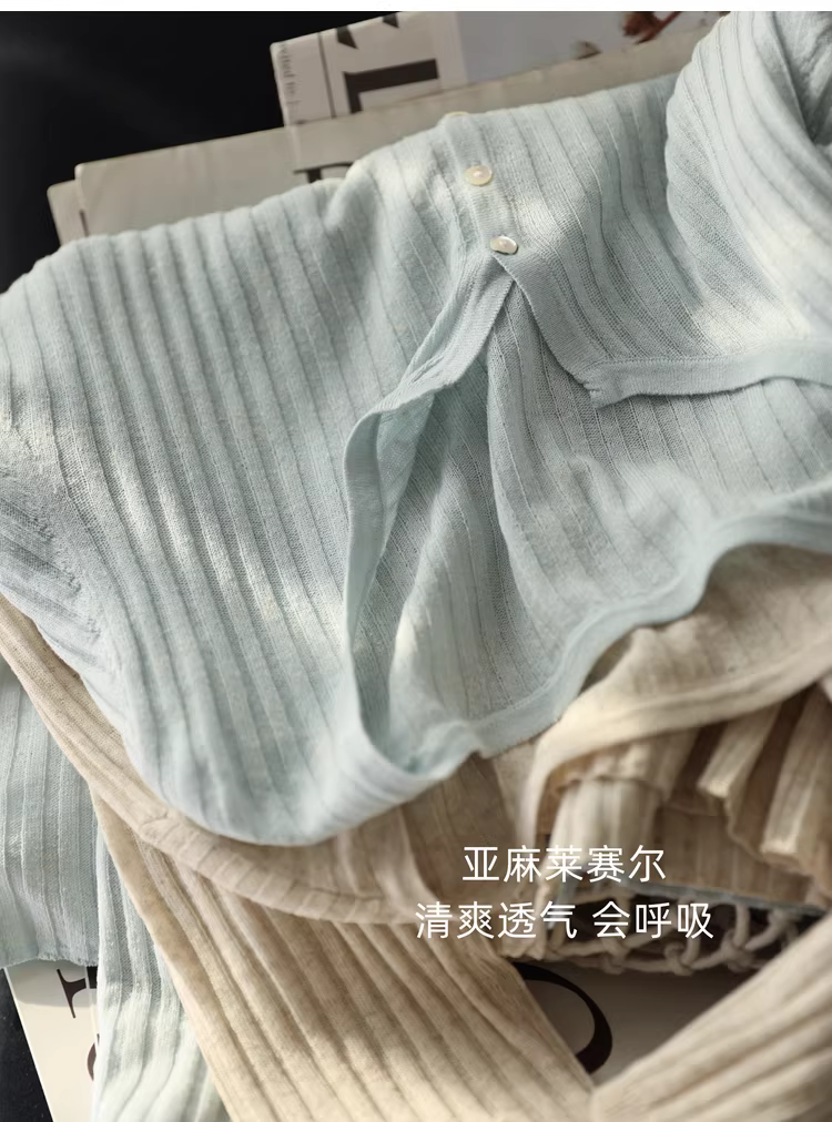 Áo cardigan dệt kim cổ tròn chất liệu vải lanh Lyocell thoáng khí, ôm dáng, mỏng nhẹ, dành cho nữ mùa xuân/hè