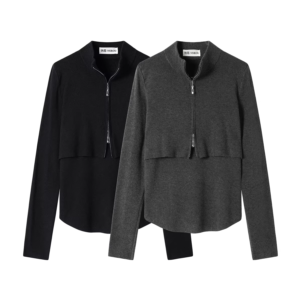 Áo cardigan dệt kim giả hai mảnh màu xám kiểu Pháp dành cho nữ, áo len dáng ôm mùa xuân và mùa thu.