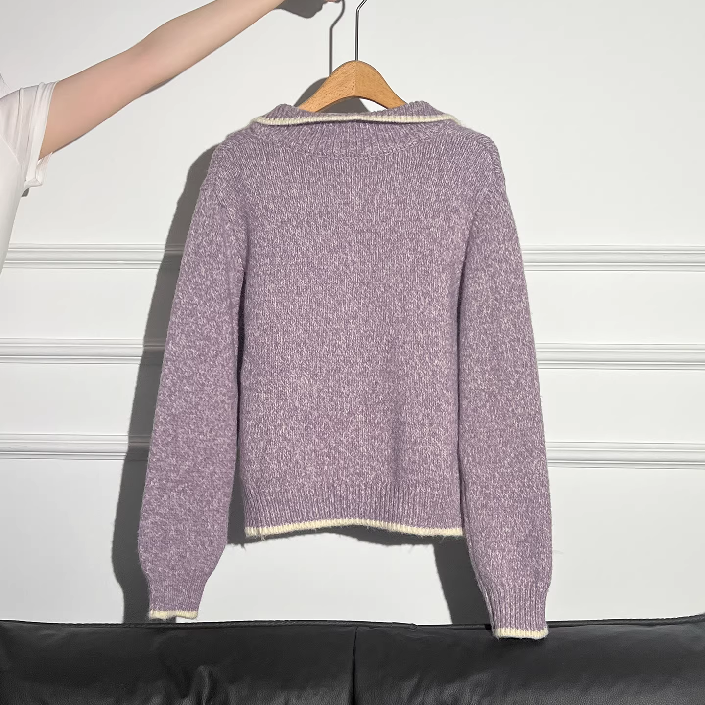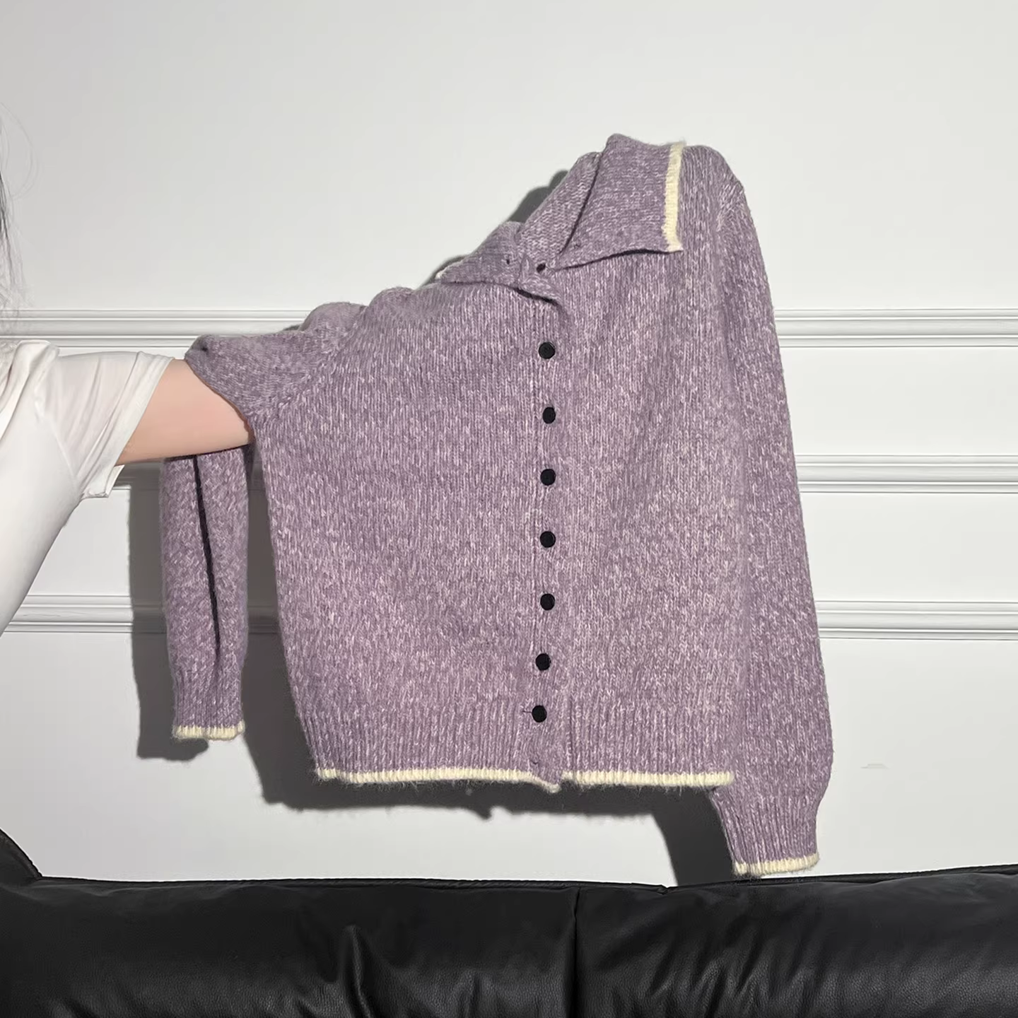 - Áo cardigan len cổ polo màu xám La Chapelle dành cho nữ, mẫu mới thu đông 2025, kiểu dáng năng động, thoải mái.
