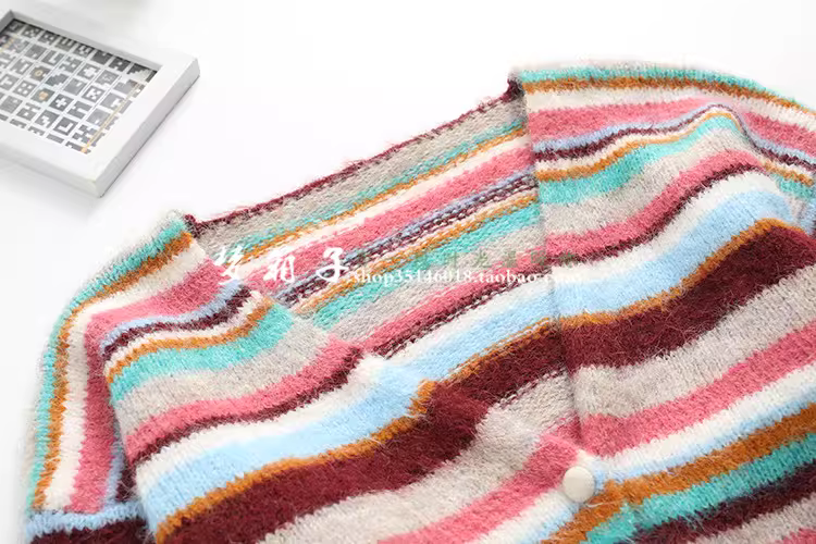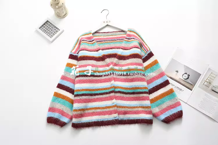 - Áo cardigan len dáng rộng tay dài cổ sâu màu sắc sặc sỡ sọc kẻ mùa thu mới Dream Box 2025