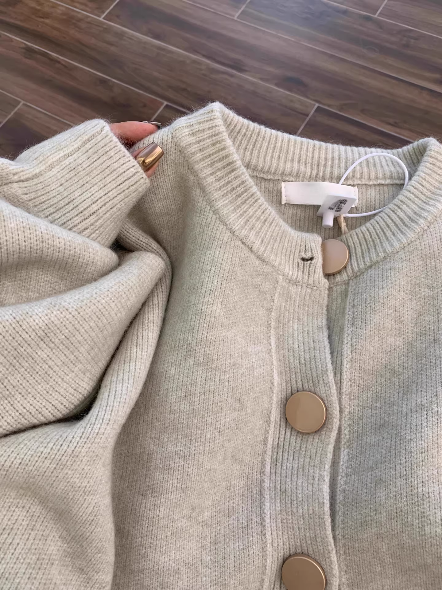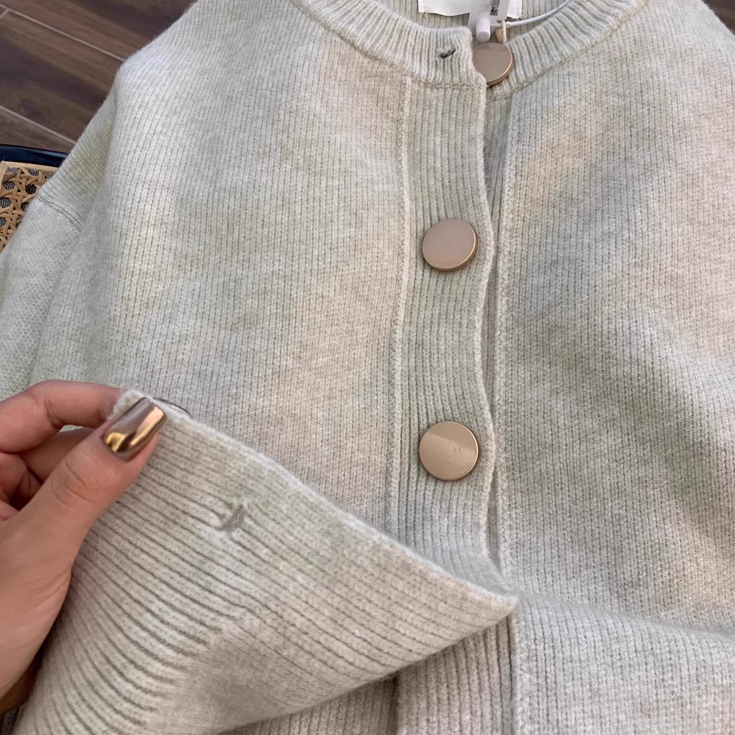 - Áo cardigan len dệt kim dáng rộng cổ tròn tay dài La Chapelle dành cho nữ, mẫu mới thu đông 2025, phong cách lười biếng.