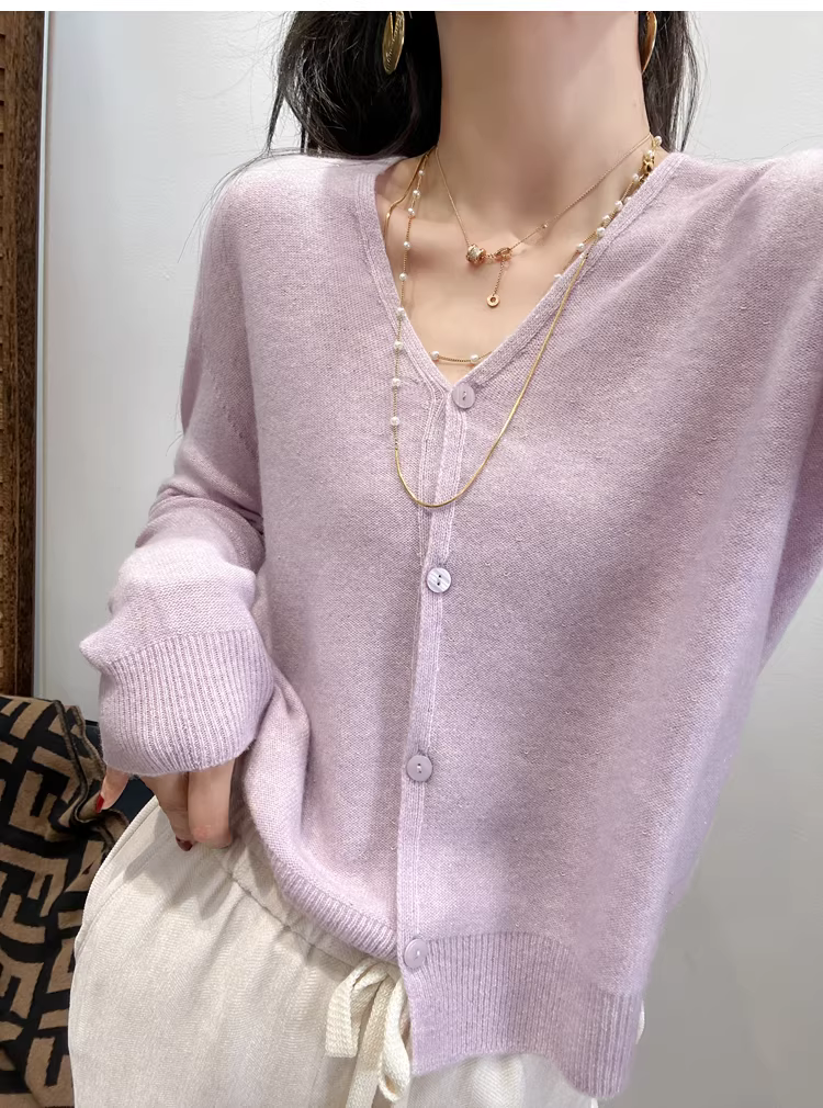 - Áo cardigan len dệt kim len merino nguyên chất cổ chữ V kiểu Pháp, chất liệu sợi vàng óng ánh lãng mạn, mới cho mùa thu dành cho nữ
