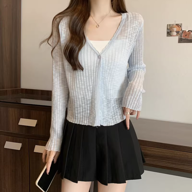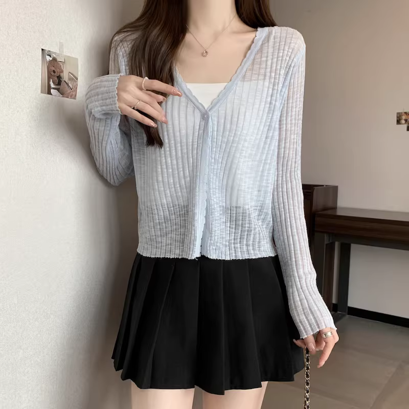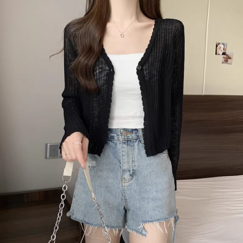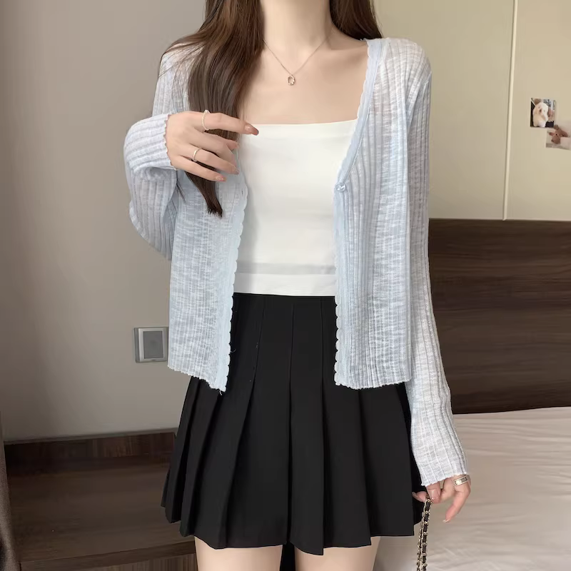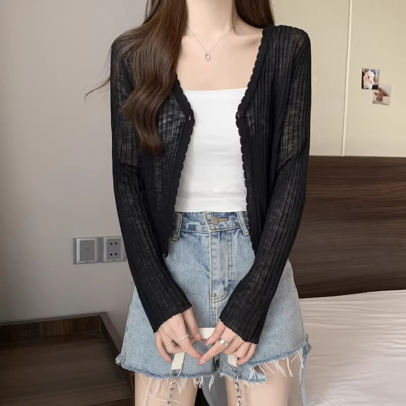 - Áo cardigan len màu xám La Chapelle chống nắng cho nữ, mẫu mới hè 2025, chất liệu lụa đá mỏng, kiểu dáng rộng rãi
