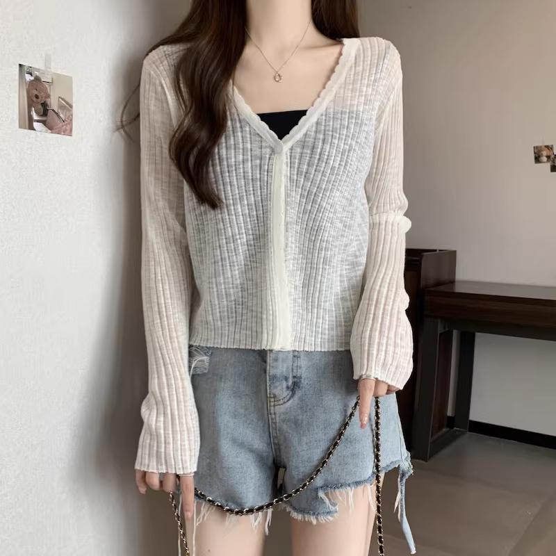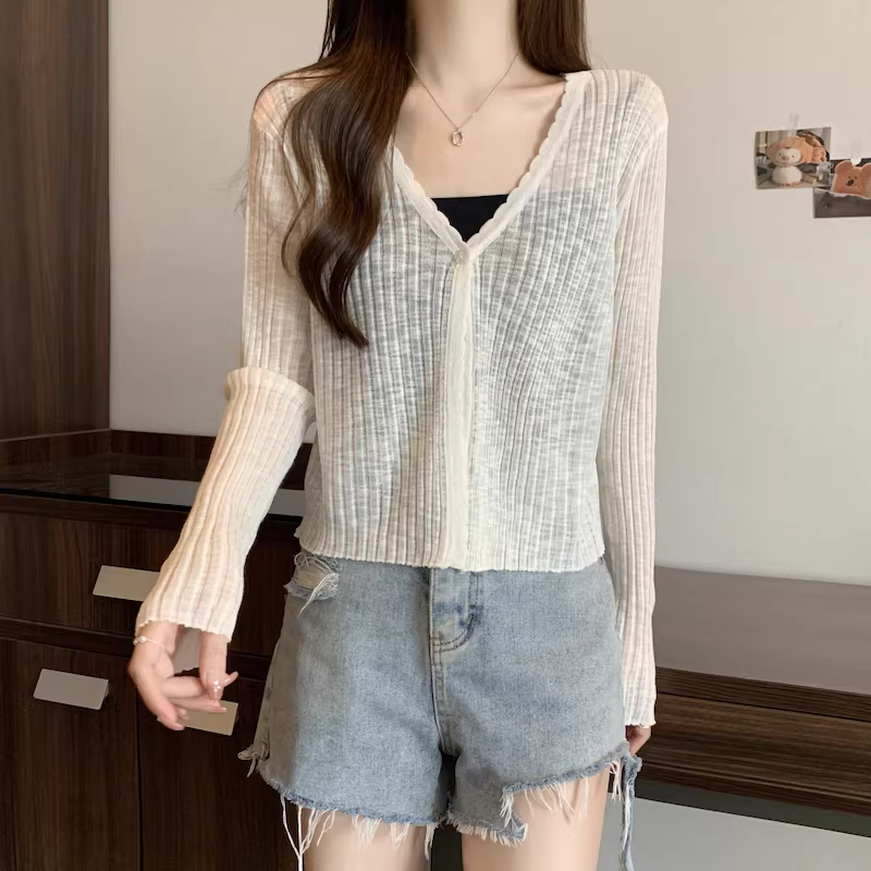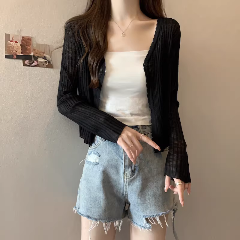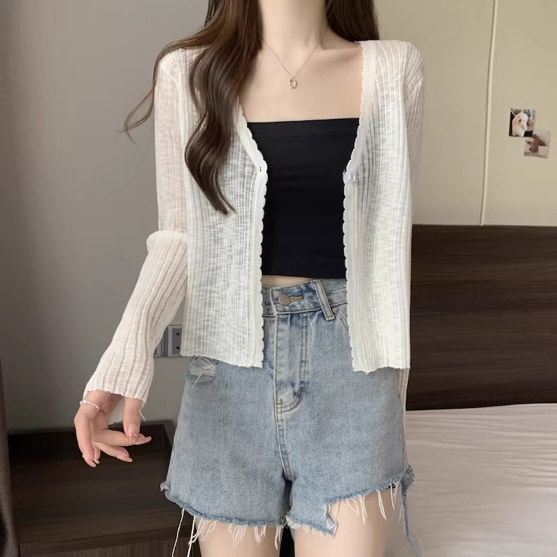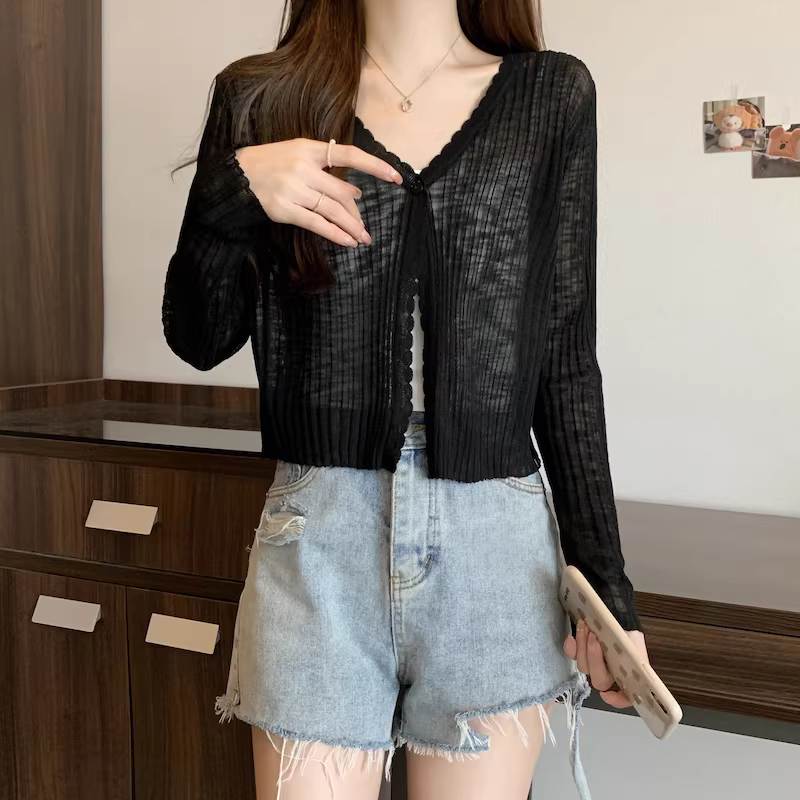 - Áo cardigan len màu xám La Chapelle chống nắng cho nữ, mẫu mới hè 2025, chất liệu lụa đá mỏng, kiểu dáng rộng rãi