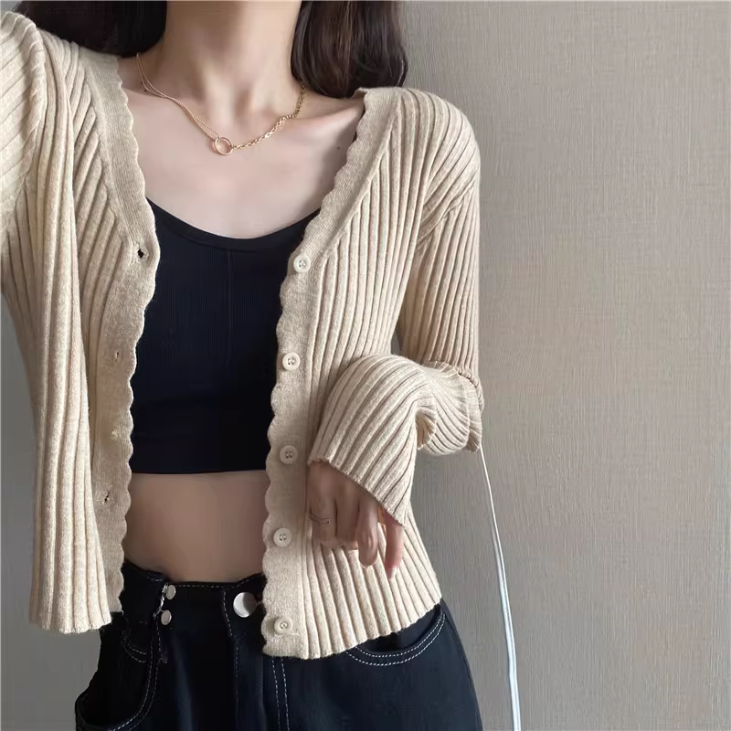 - Áo cardigan len nữ giảm giá, hàng xuất khẩu, cắt mác, phong cách Pháp độc đáo, ôm dáng, áo khoác ngoài.