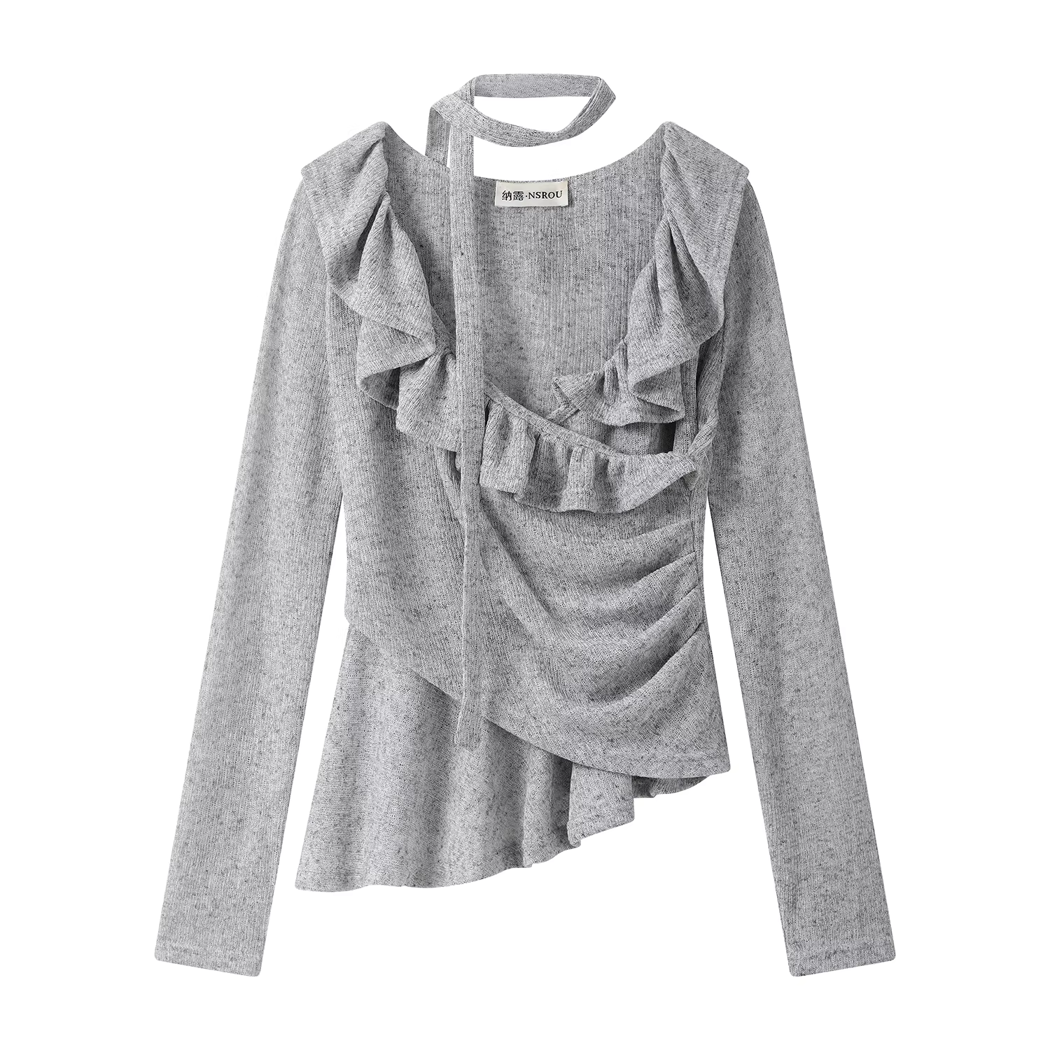 Áo dệt kim dài tay trễ vai kiểu Pháp dành cho nữ, thiết kế mới cho đầu thu, áo độc đáo và đẹp