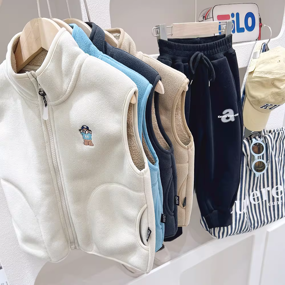 - Áo ghi lê hoạt hình alpaca cho bé trai mùa xuân đông 2025, áo khoác lót lông cừu dày dặn có khóa kéo