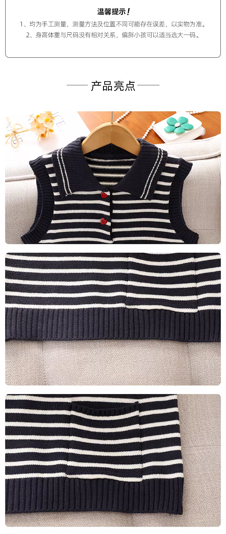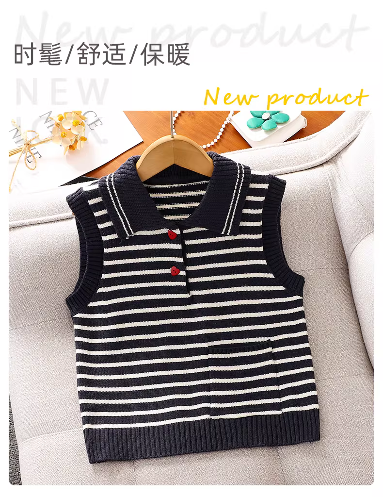 - Áo gile bé gái mùa xuân thu, áo trẻ em, áo len sọc bé gái mới 2025, kiểu Hàn Quốc, chất liệu dệt kim