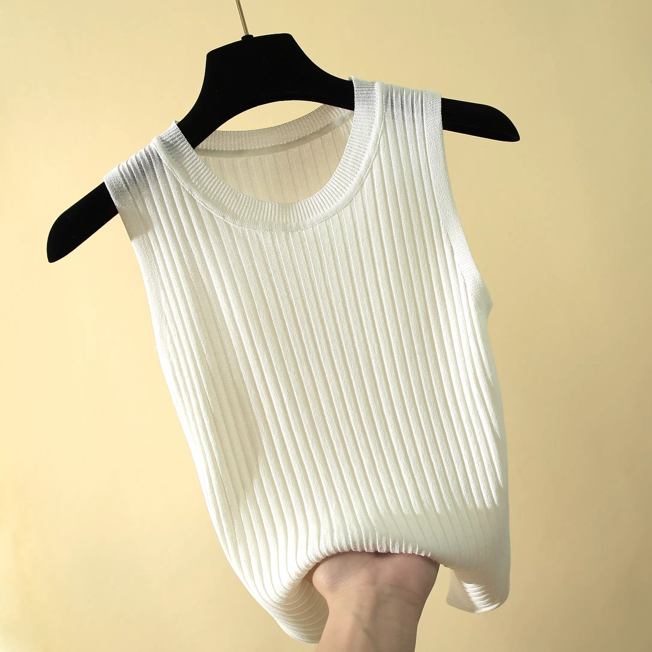 - Áo gile dệt kim mỏng chất liệu lụa đá cổ tròn dành cho nữ, kiểu áo len chui đầu ôm dáng màu trơn đa năng, áo lót cơ bản