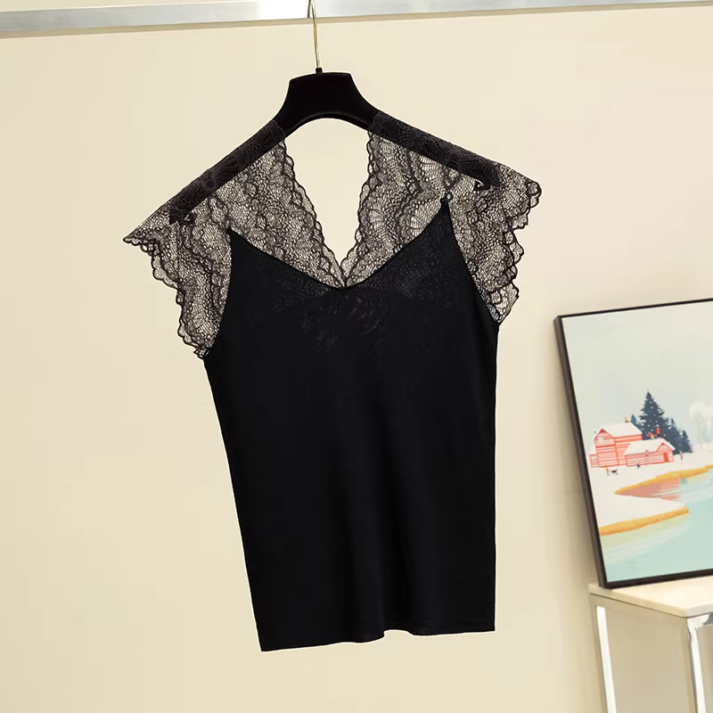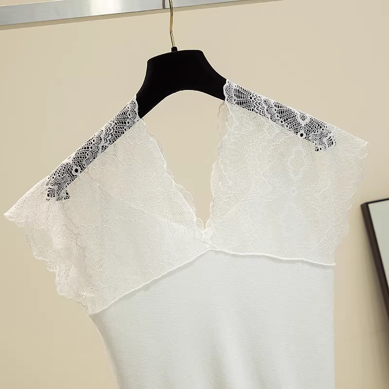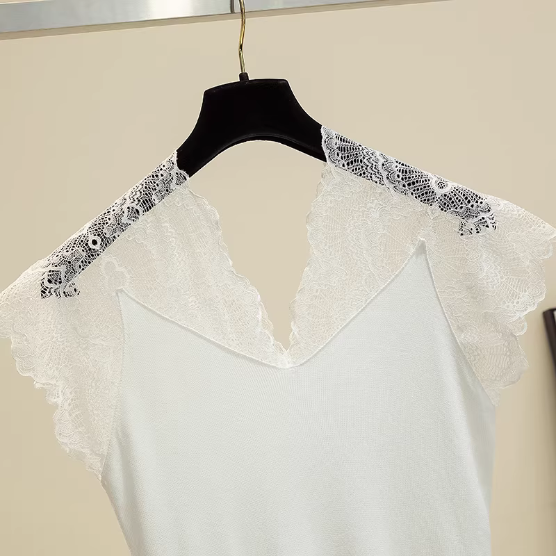 Áo gile len lụa đá cao cấp giảm giá, thiết kế độc đáo, kiểu dáng nữ tính, cổ V khoét sâu, phối ren, không tay